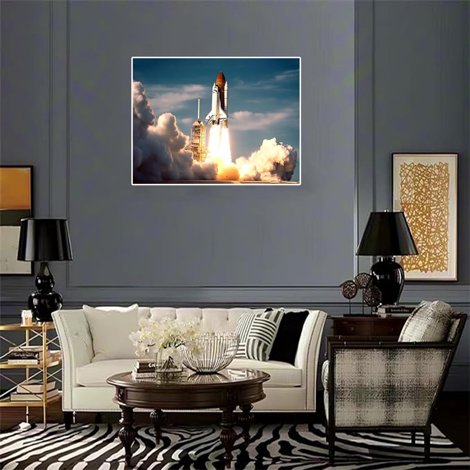 Diamond Painting Kits Magnificent Space Shuttle Launching, 5D DIY Crafts for Adults Diamond Art Kits, Full Drill Round Gem Painting Kit Paint with Diamonds Dots, Space Rocket Launch Gifts 12x16 inch