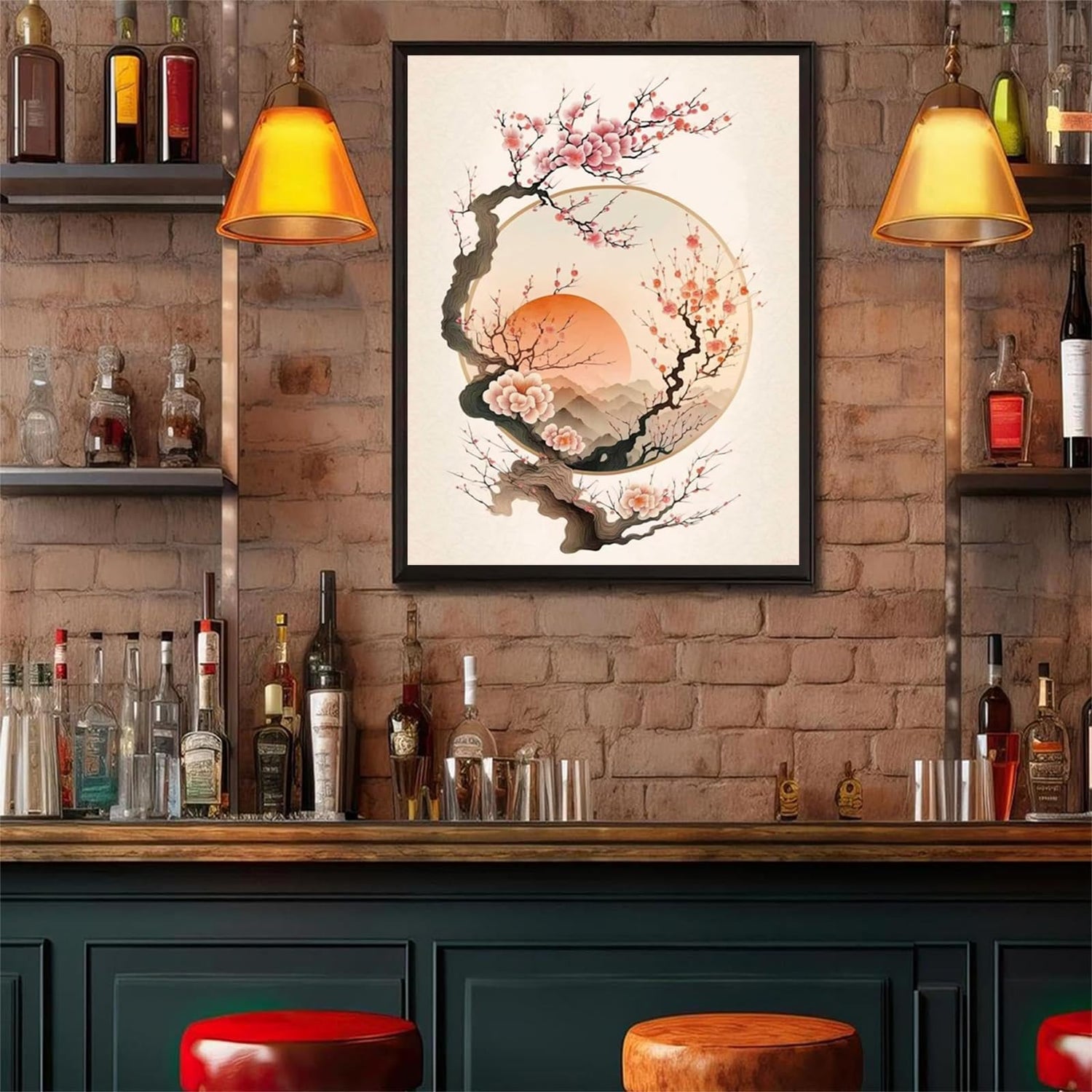 Diamond Painting Peach Blossom Set, 5D Chinese Style Adult Diamond Art, Full Diamond Painting Kit, Gem Art Painting Red Sun, DIY Diamond Painting Kit for Beginners 12x16 inch