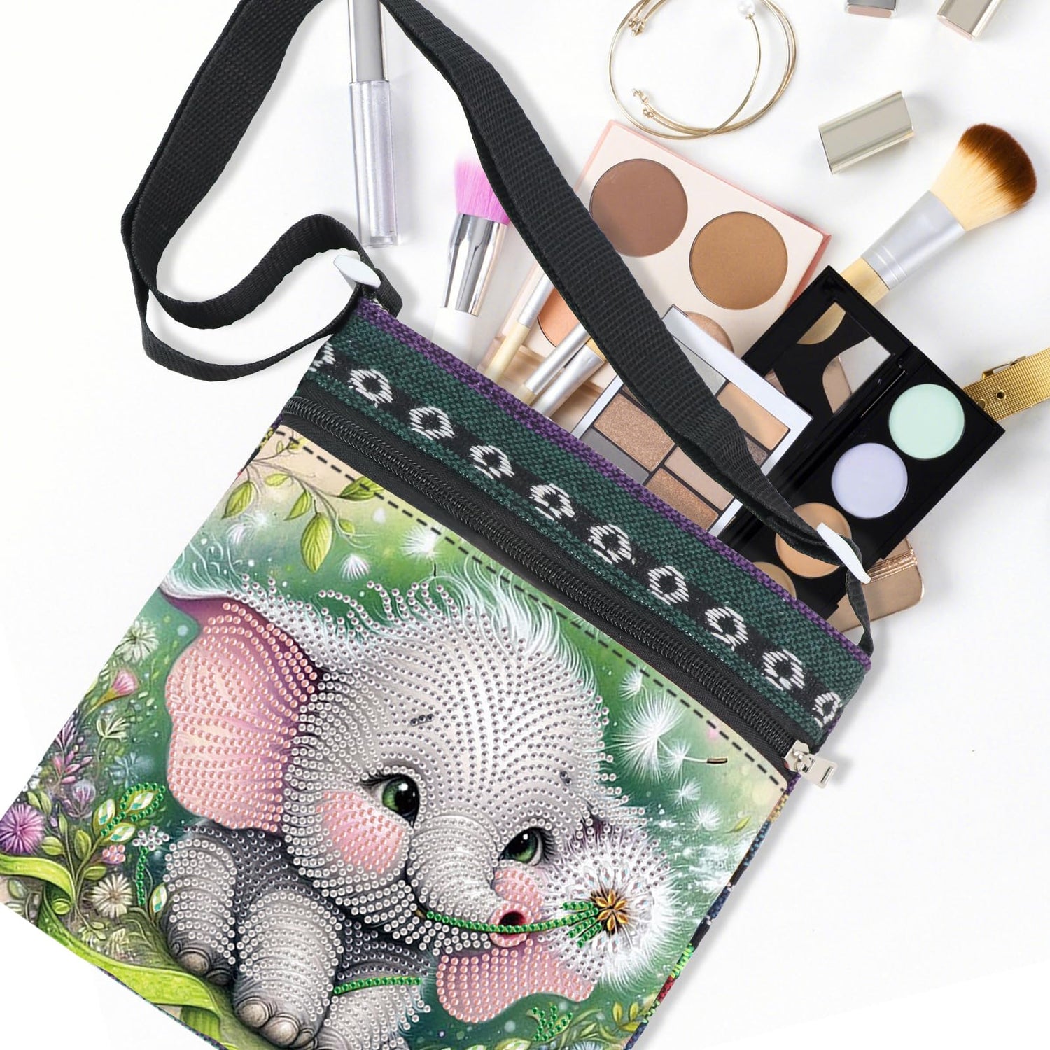 Diamond Painting Shoulder Bag, DIY 5D Elephant and dandelion Pattern Diamond Art Artificial Crystal Special Shape Crystal Artificial Partial Mosaic Crafts Adjustable shoulder strap Shoulder Bag