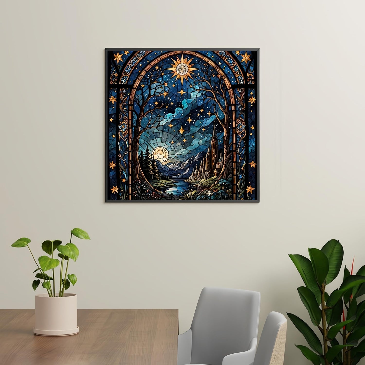 Diamond Paintings Kits for Beginners,Full Drill Night Sky Stained Glass Diamond Arts Kits for Adults,Starry Landscape Paint by Diamond,5D DIY Diamond Painting Dot Gem Art,Home Wall Decor 13.8x13.8