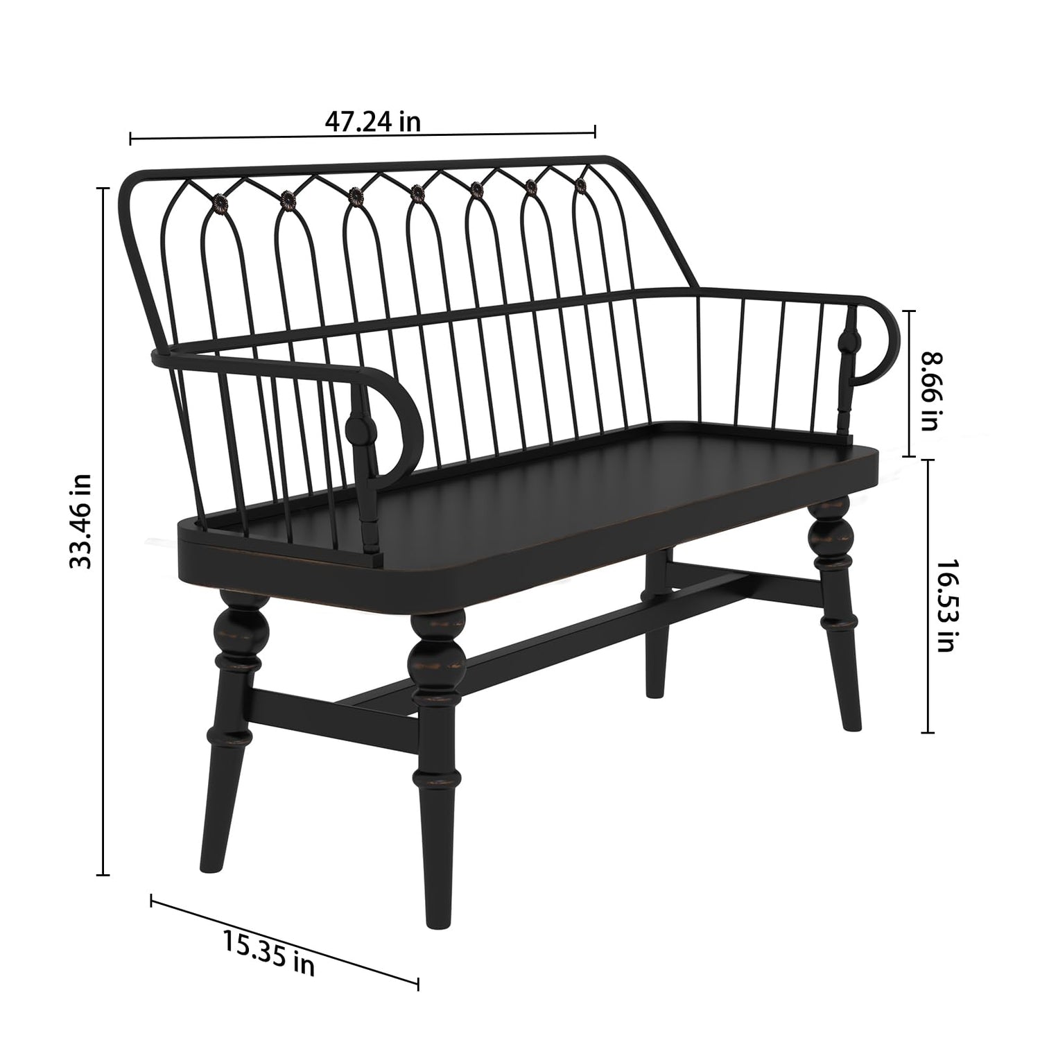 - 【Sturdy and Safe】This settee is made of iron and solid wood, bench with back and armrest provide additional support and comfort for the back and arms while sitting. The 4 heavy-duty crafted legs are made of solid wood for added weight-bearing capacity.