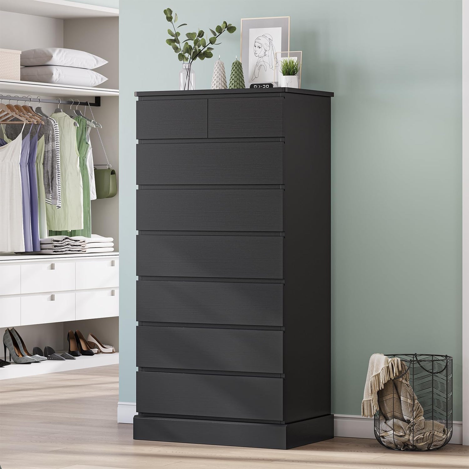 DICTAC Black Tall Dresser for Bedroom with 8 Drawers, 59.6" Tall Dressers & Chests of Drawers, Modern Wood Closet Organizer and Storage Cabinet, Large Vertical Dresser for Bedroom, Closet, Hallway