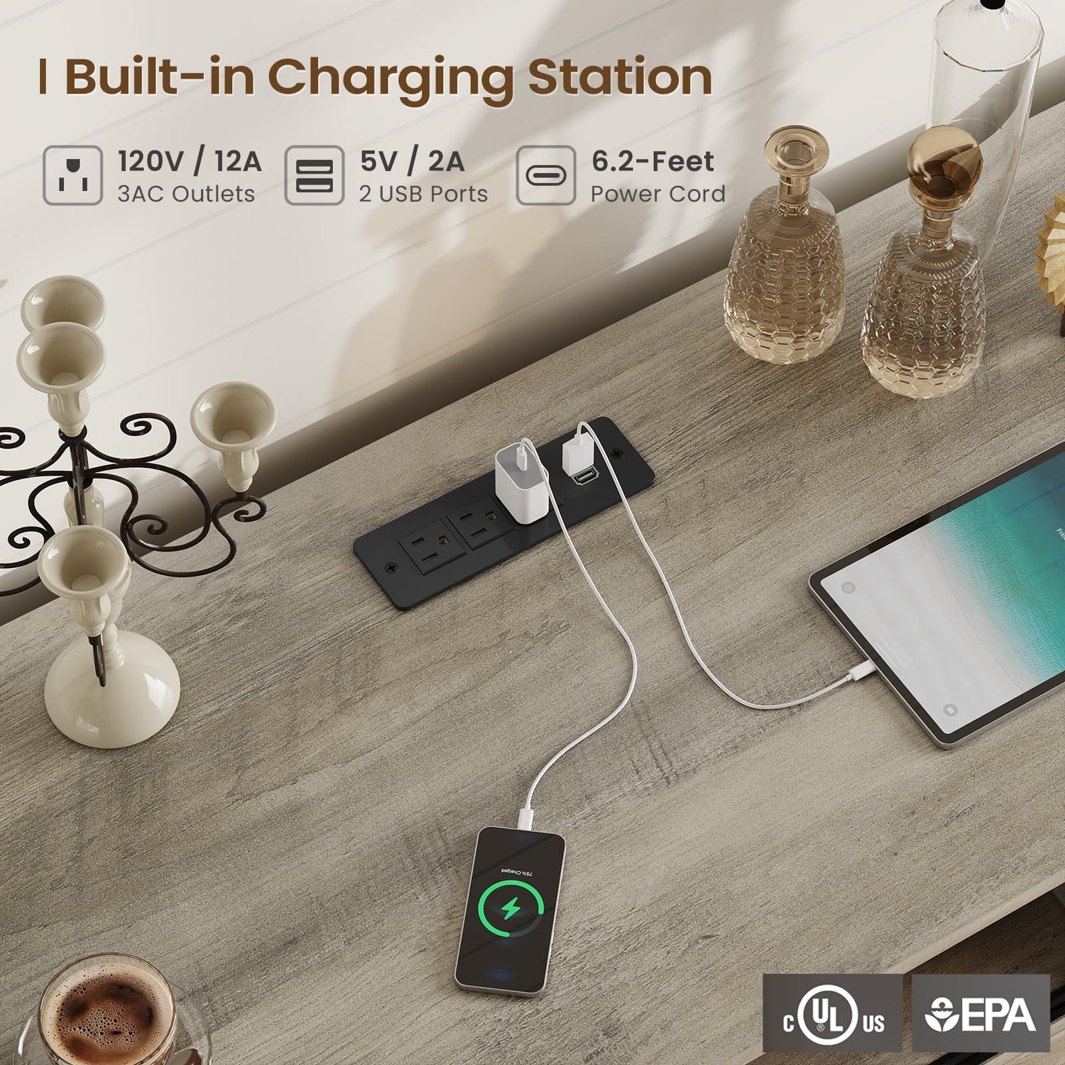 - Dresser with Charging Station: This stylish Dresser features 3 standard plug outlets and 2 USB Ports. One USB port of them is tied up with the led lights. It provides convenience for charging your phone, earphone, desk lamp, and other electrical appliances.