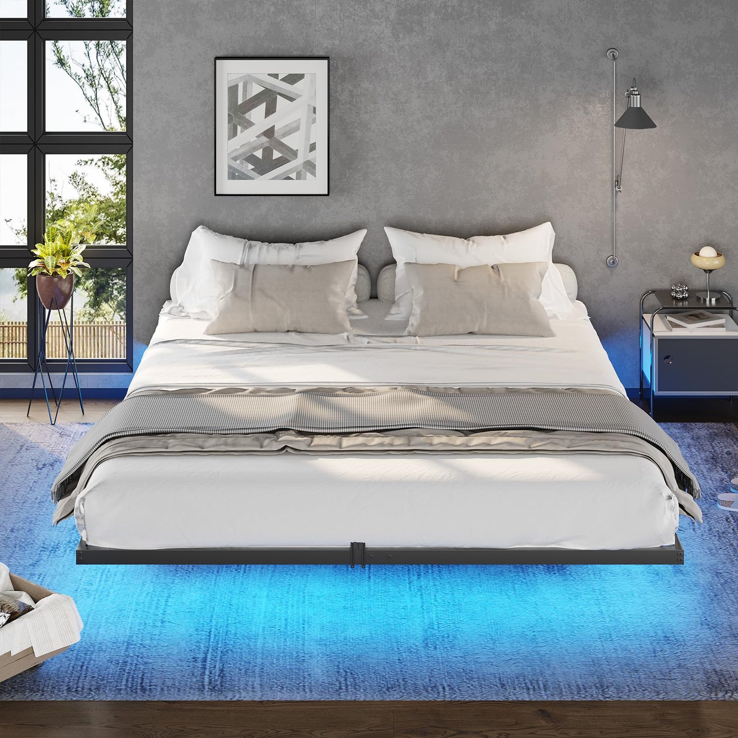 DICTAC King Size Floating Bed Frame with LED Lights and Heavy Duty Steel Support, Black