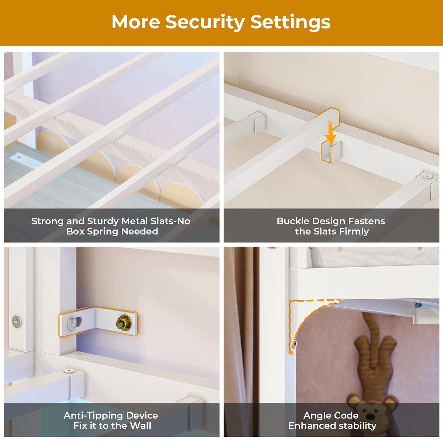 - 【Safety Comes First】Adopt a stronger square metal frame structure,each component is securely secure with heavy-duty screws and tested to ensure the twin loft beds security and stability. Enjoy peace of mind with a 13.11" heightened full-length safety guardrail and metal Anti-Tipping Nails(to securely fasten the loft bed to the wall) for added safety, don't worry about falling out of the bed while sleeping.