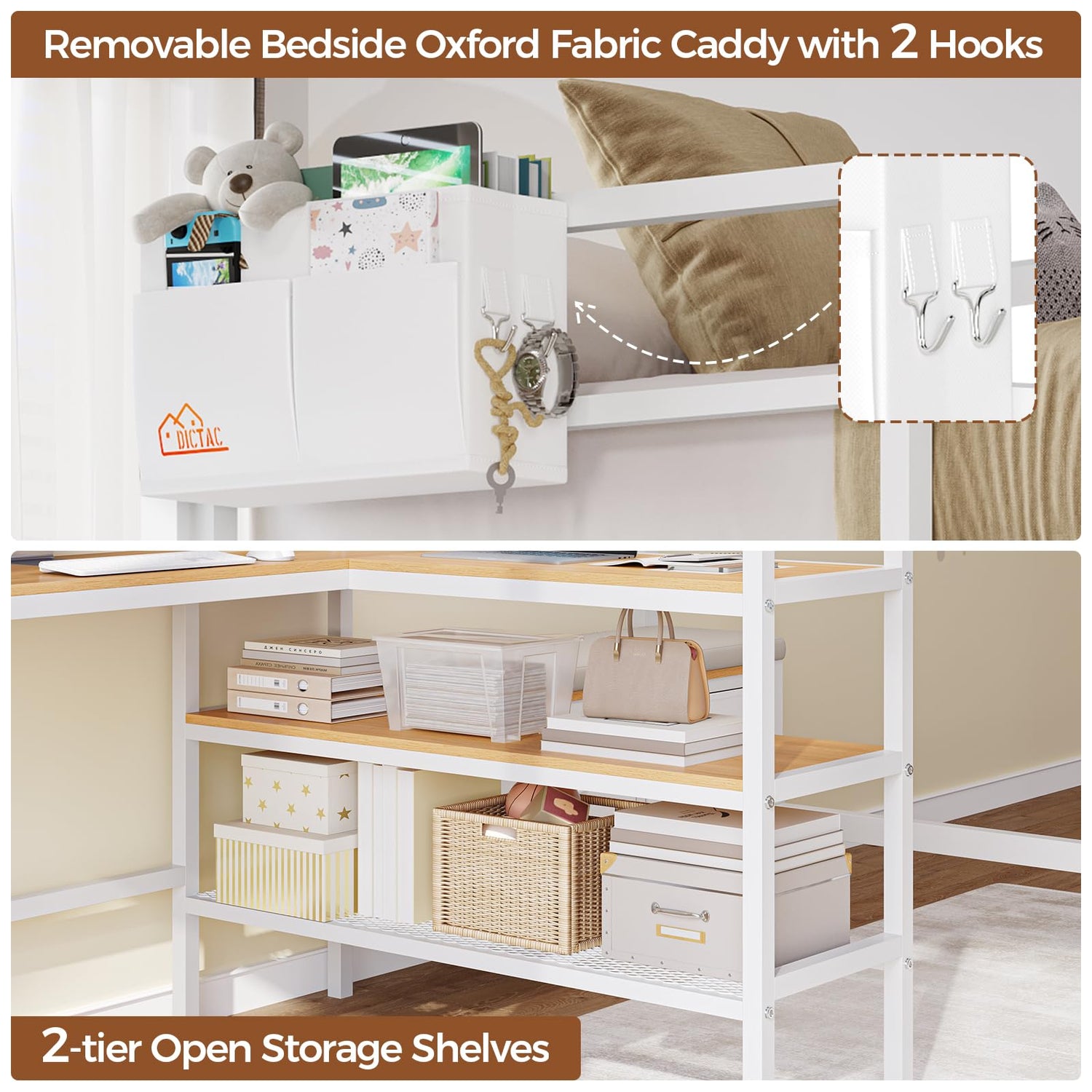 - 【Ultimate Space Utilization】Designed with space-saving in mind, DICTAC loft beds twin size with the upper bunk providing sleeping space,the coat rack with shoe bench and 2 fabric drawers is moved into the lower bunk, and equipped with an L-shaped desk and 2 open storage shelves which optimizes vertical space utilization, and enhances the function of any room, combining practicality and style,perfect for space-saving needs.