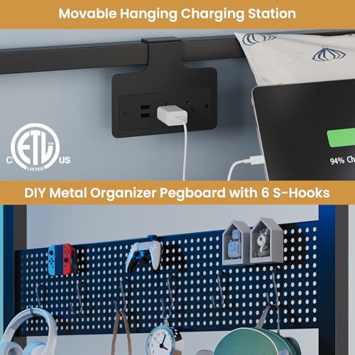 - 【Practical charging socket】DICTAC bunk bed features a hanging charging station with 2 AC outlets and 2 USB ports, which are convenient for charging for phones, tablets, laptops, and gaming devices—all within arm's reach for effortless bedtime use.
