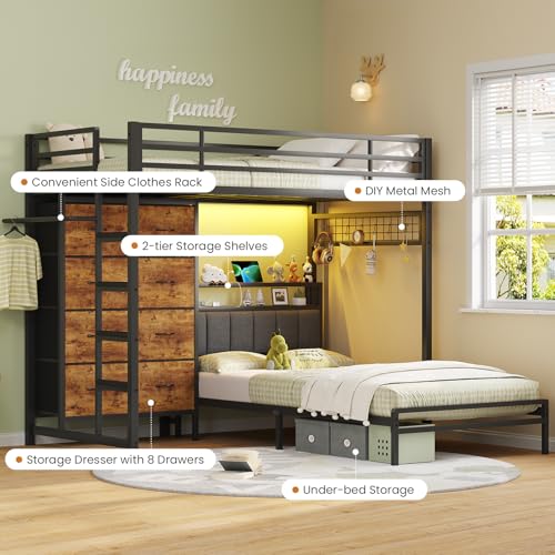 - 【Space-Saving & Space-Creating】 Small room messy? Toys, clothes, and books piled everywhere? Let DICTAC twin over twin bunk bed come to your rescue! It ingeniously combines 2 cozy single beds and a storage dresser with 8 spacious drawers. Its space-efficient L-shaped design fits snugly into a corner, instantly freeing up valuable bedroom space. Kids can laugh and play in their shared "secret fort," making bedtime fun—while you finally say goodbye to toy clutter everywhere!