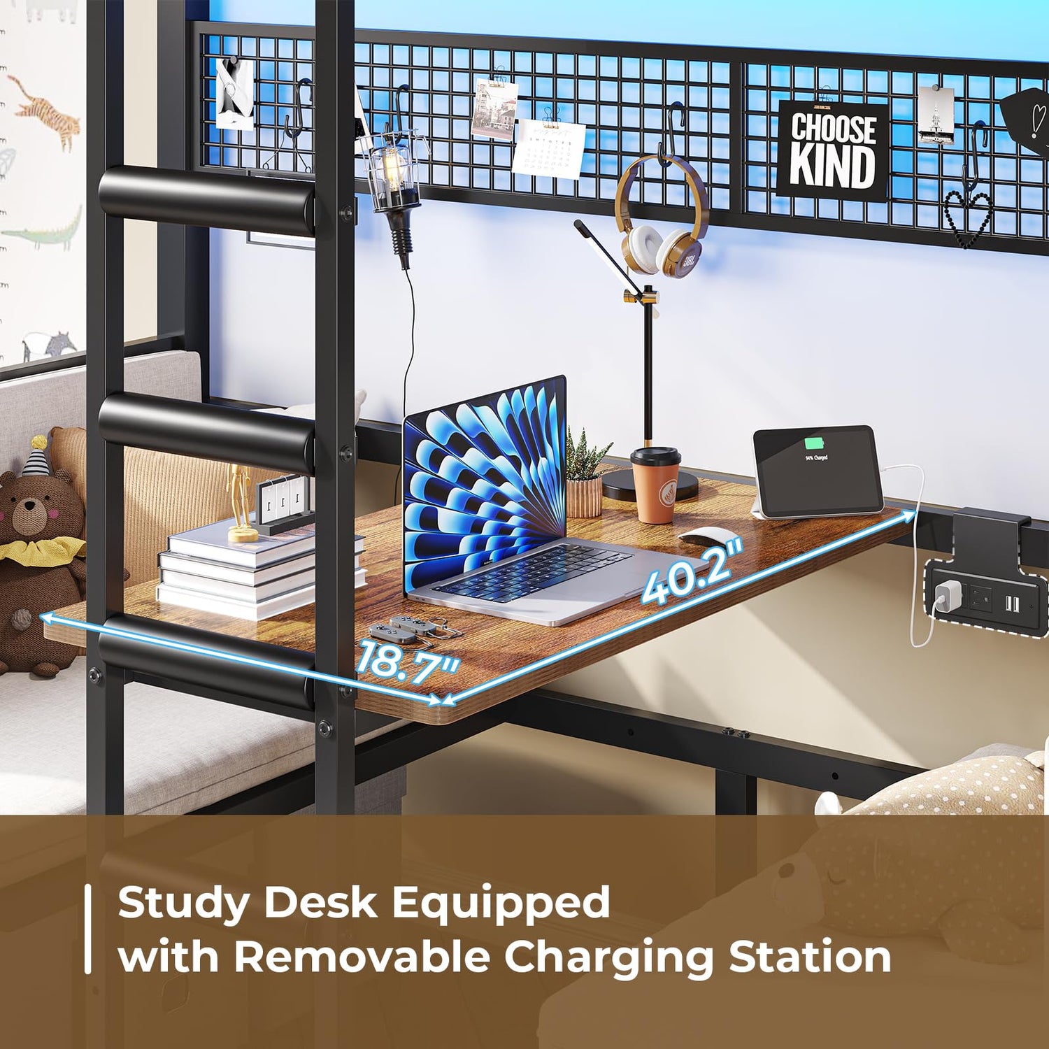 • 【Loft Bed with Desk and Charging Station】When the twin over twin bunk bed transforms into a a table with two seats.(Note: Bench Pad not Included).Children can do homework, play with toys on the desk and have a happy time with their good friends. They can also stay with friends at night and share this bunk bed. Or you can read and watch movies with your children on the bench and enjoy parent-child time.The hanging power strips can be moved at will,includes 2 USB ports and 2 AC outlets making it convenient for you to charge electronic devices.