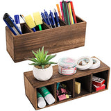Dicunoy 2 Pack Wooden Pencil Holder for Desk, Rustic Wood Remote Control Holder Caddy, Retro Table Organizer with 4 Compartments for Art Supplies,