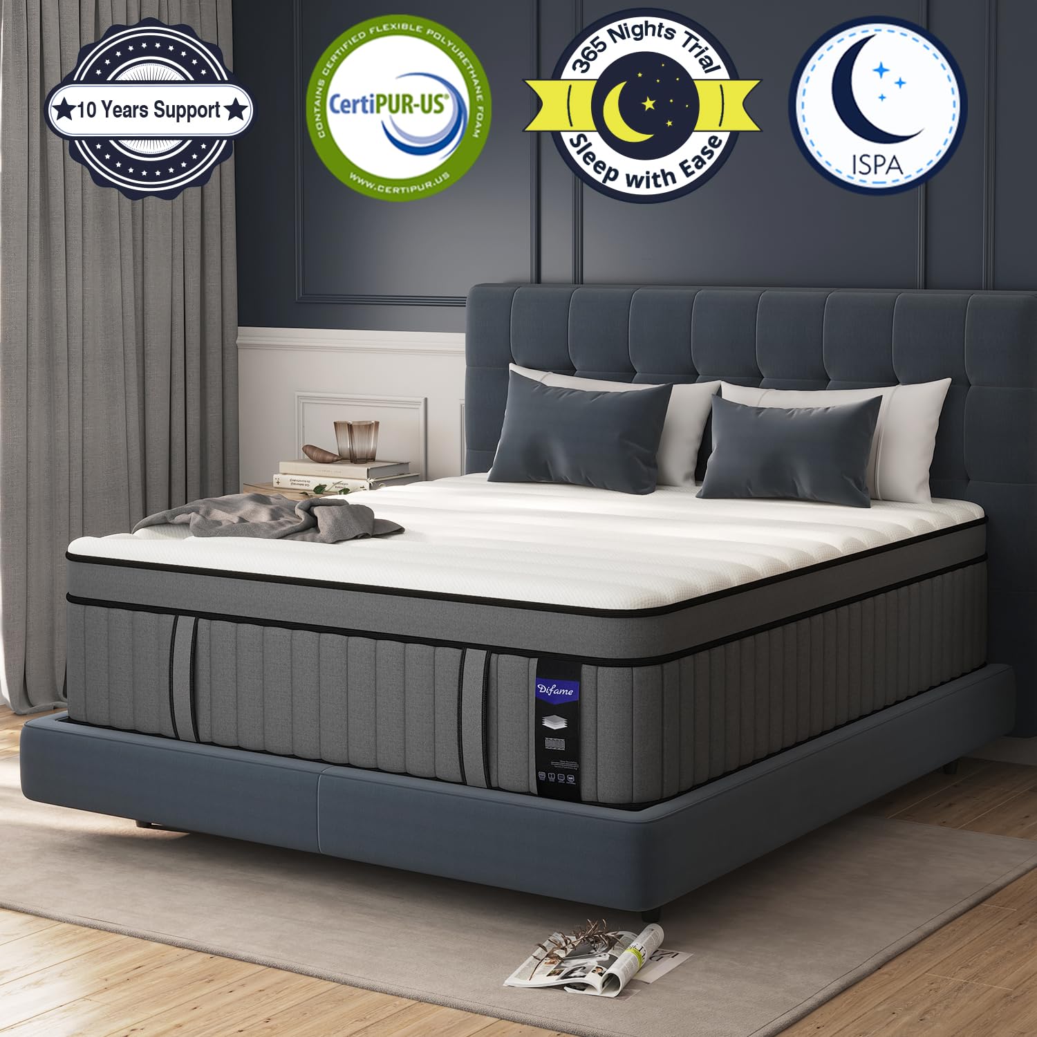 - Motion Isolation Design —— The DIFAME cal king size mattress features advanced motion isolation technology, combining high-density memory foam with individually pocketed springs. This cal king mattress minimizes motion transfer, allowing undisturbed sleep even if your partner tosses and turns, ensuring a peaceful night