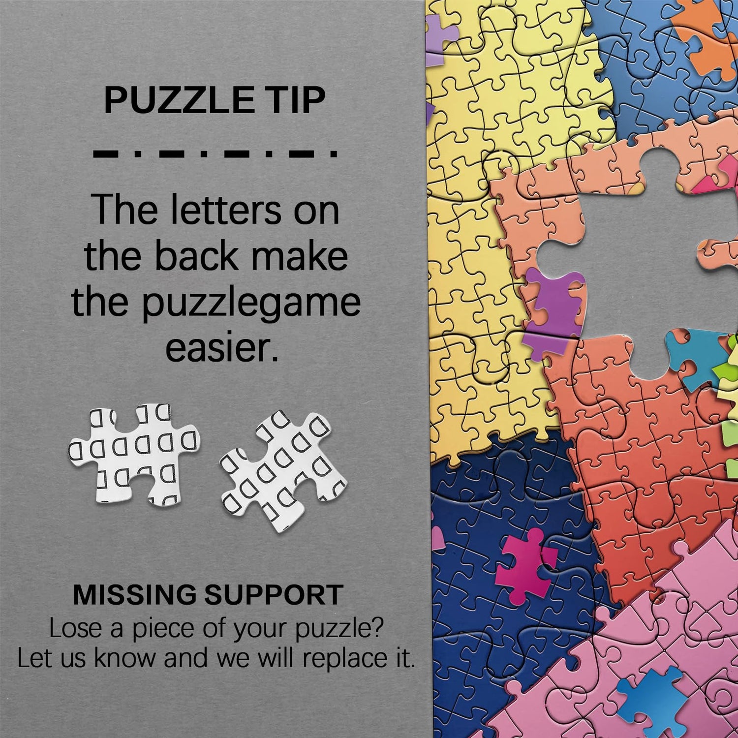 - Missing Piece Support - Your puzzles for adults Guardian! Missing a piece? Worry not! Let me know without hesitation. We are dedicated to promptly providing you with service, keeping your puzzle experience remains flawless and delightful