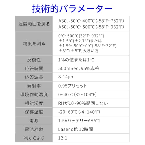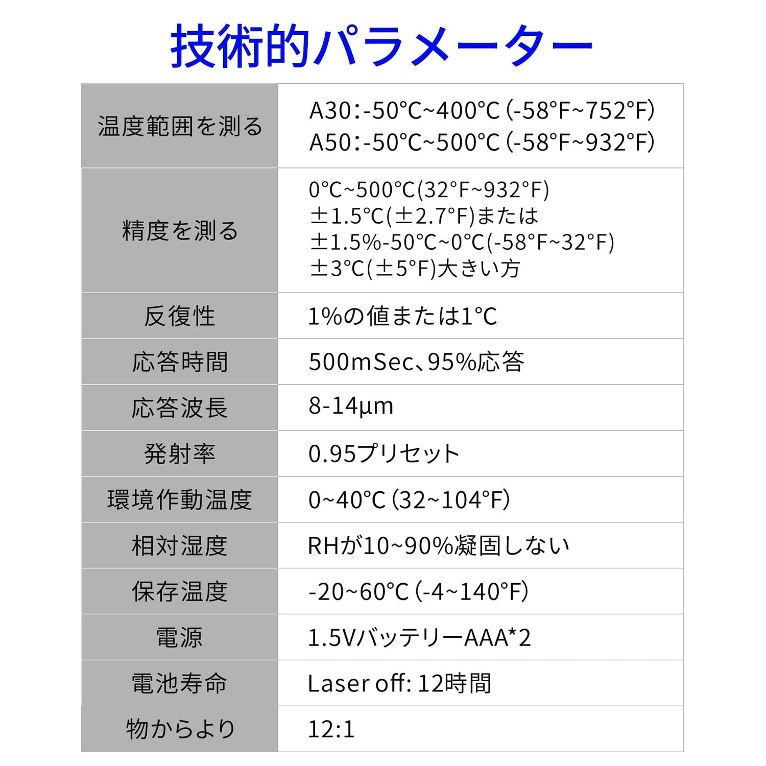 - Temperature measurement range:-50℃-500℃ (-58℉-932℉)Display resolution: 0.1 ℃ or 0.1 ℉