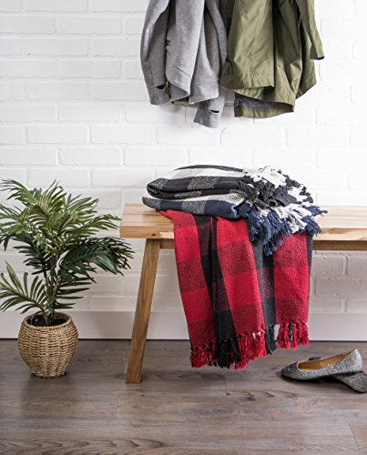 DII Buffalo Check Collection Rustic Farmhouse Throw Blanket with Tassles, 50x60, Black/White