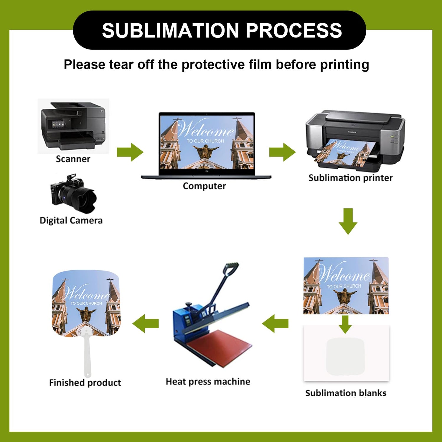 - Double Sided Sublimation Fans: The sublimation fans blank are covered with protective film on both sides. Please tear off the protective film before printing. Transfer the pattern for 50-60 seconds at 356-374℉.