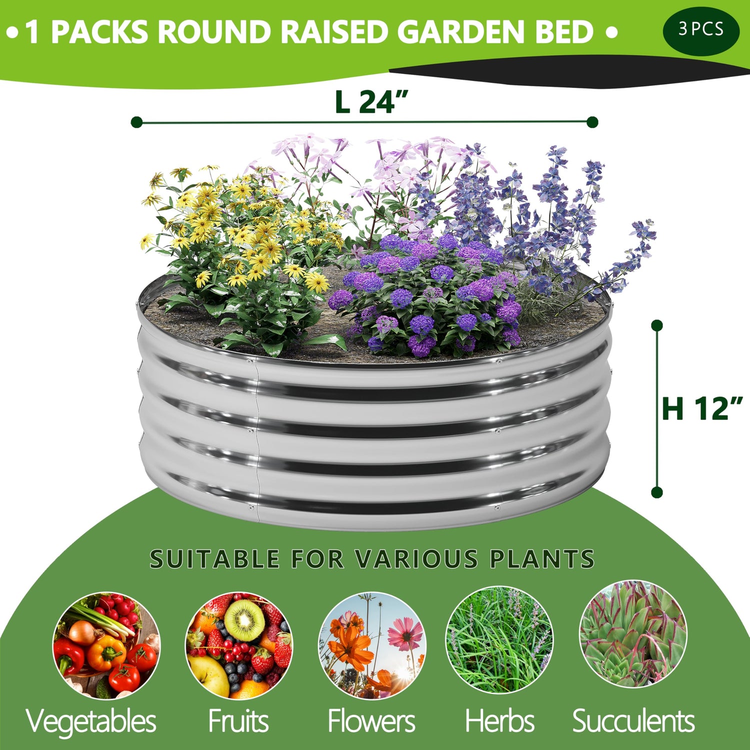 - Size: 24"(L) x 24"(W) x 12"(H),Planter raised bed provide outdoor sufficient space to grow vegetables,flowers,galvanized garden bed