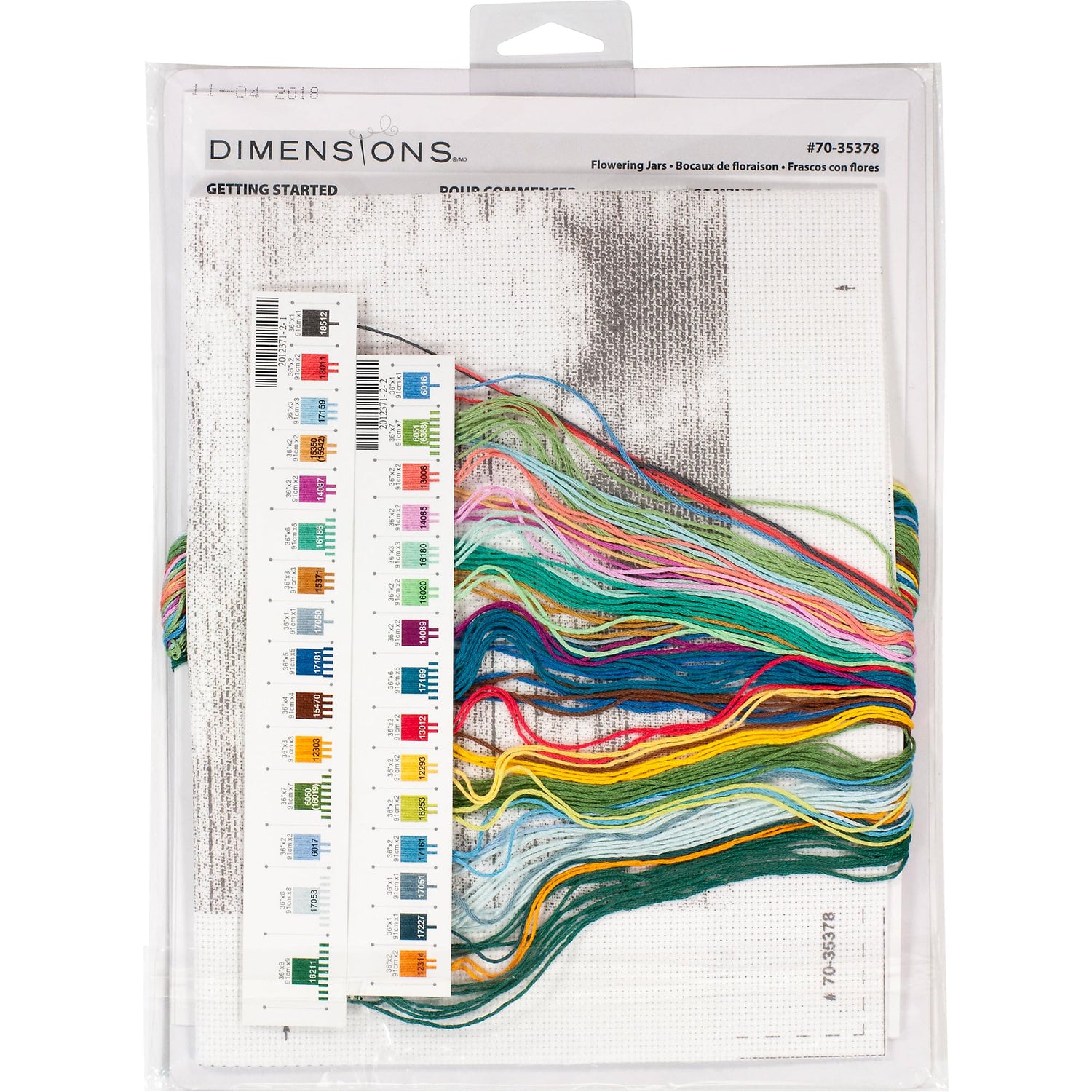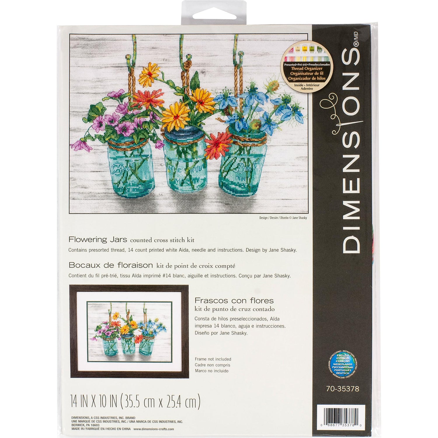 Dimensions 70-35378 Mason Jar Flowers Counted Cross Stitch Kit, 14 Cnt. White Aida Cloth, 14 x 10