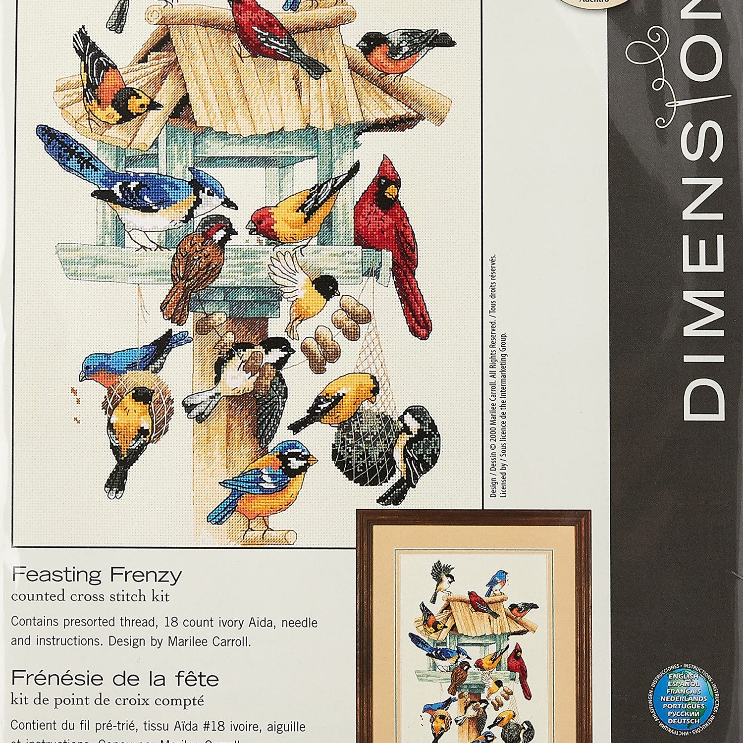 Details: Stitch a beautiful piece of handmade décor with the Dimensions Feasting Frenzy Counted Cross Stitch Kit! This colorful counted cross stitch pattern features a variety of birds sharing a snack around the bird feeder. Full of bright colors and intricate details, this advanced cross stitch pattern is sure to be a fun and rewarding challenge for crafters and bird lovers alike! Includes 18 count ivory Aida, presorted cotton thread, needle, and easy to follow instructions. Completed bird cross stitch craft measures 10'' x 14''.
