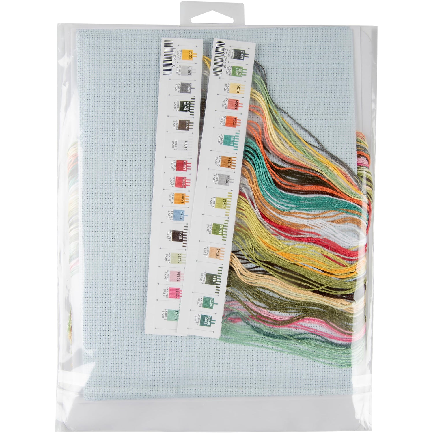 - This counted cross stitch set contains presorted thread, 14 count lt. blue Aida, needles, and instructions