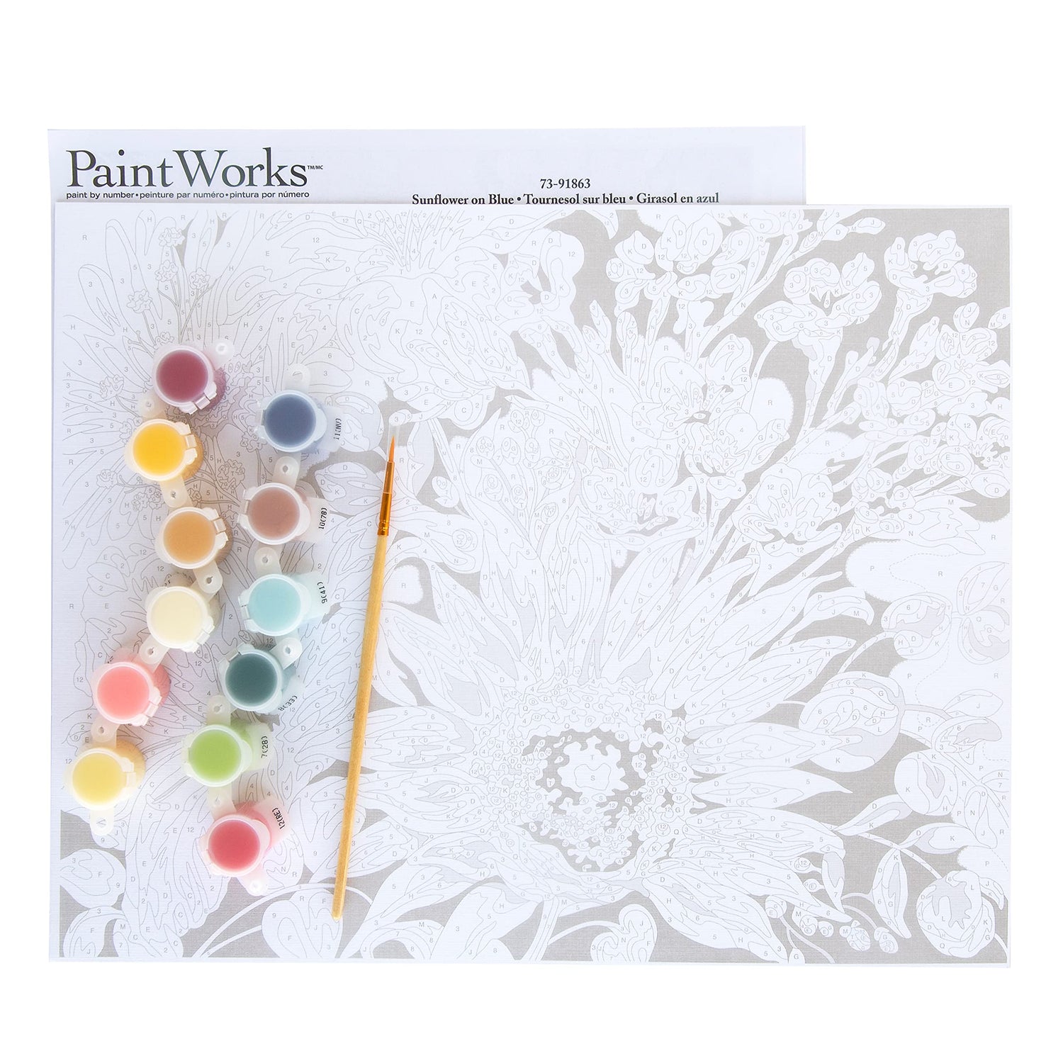 - Dimensions Paintworks paint by number kits comes with high-quality acrylic paints, a printed art board, #1 round paintbrush, and instructions