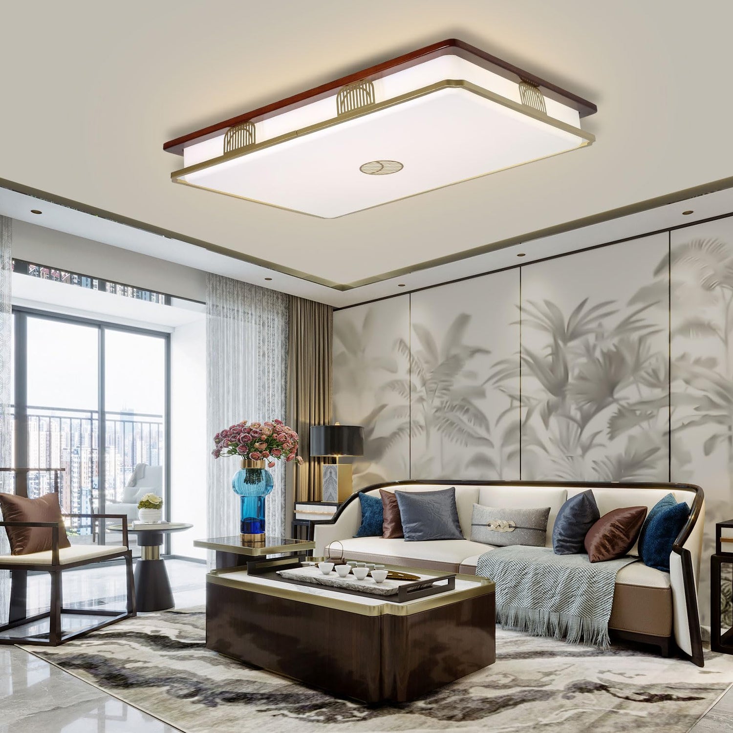 Dimmable Modern LED Ceiling Light, 38'' Large Rectangular Ceiling Lamps with Remote Control, Wood Flush 3000K-6000K Mount Light Fixtures for Living Room Dining Room Bedroom