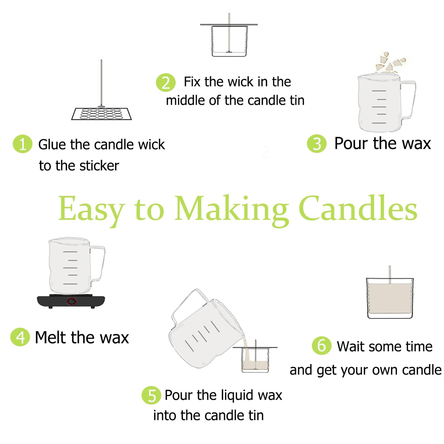 - QUALITY GUARANTEE : Good quality of candle making tools helps you make various candles by yourself more easily. With humanize return policy. Value for money guaranteed, if you are not Satisfied with your Purchase for Any Reason, you can contact us for a free replacement or MONEY BACK GUARANTEE.
