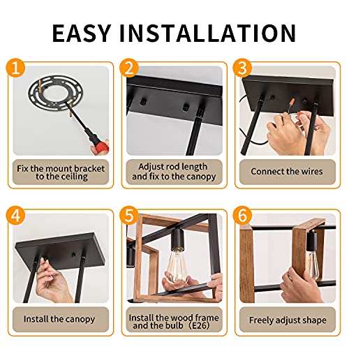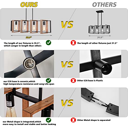 2.Dining room light fixtures over table is made of iron material with matte black powder coated and friendly grain paint wood, to give you higher quality and nice ambience at home