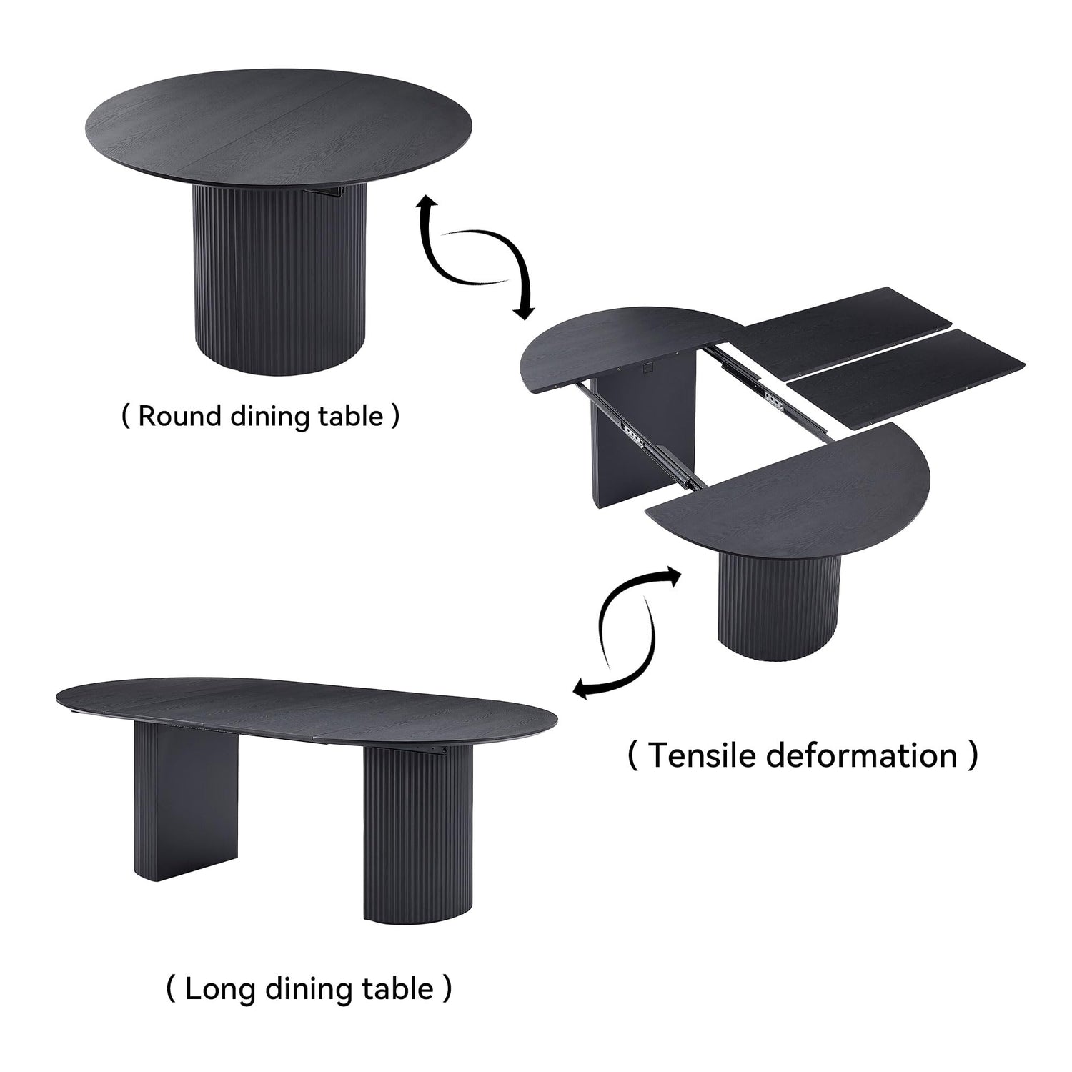 Dining Table, 86.61" to 47.24" Expandable Table for 4 to 8, Modern Extendable Kitchen Table, Round to Large Oval Solid Wood Table Furniture for Dining Room Kitchen Leisure Living Room Apartment, Black