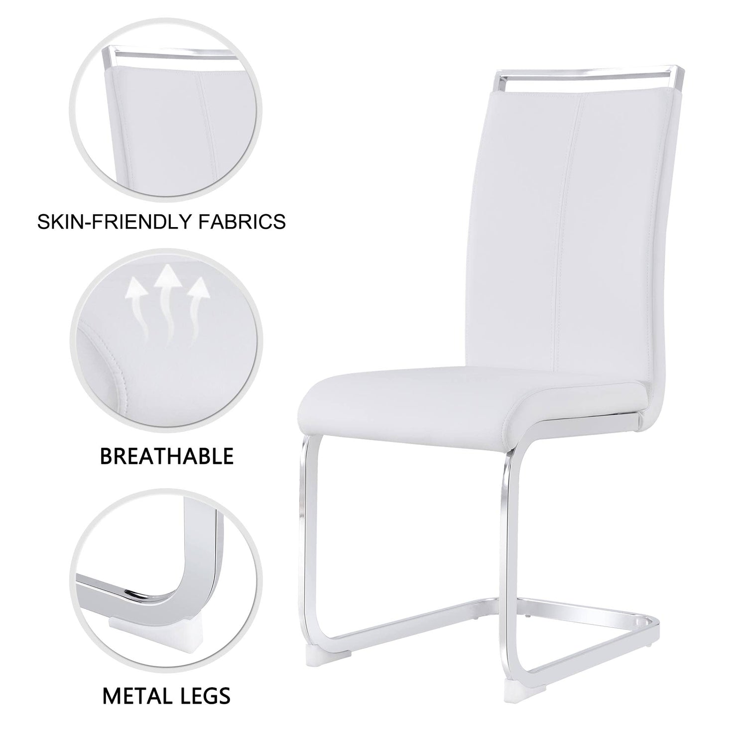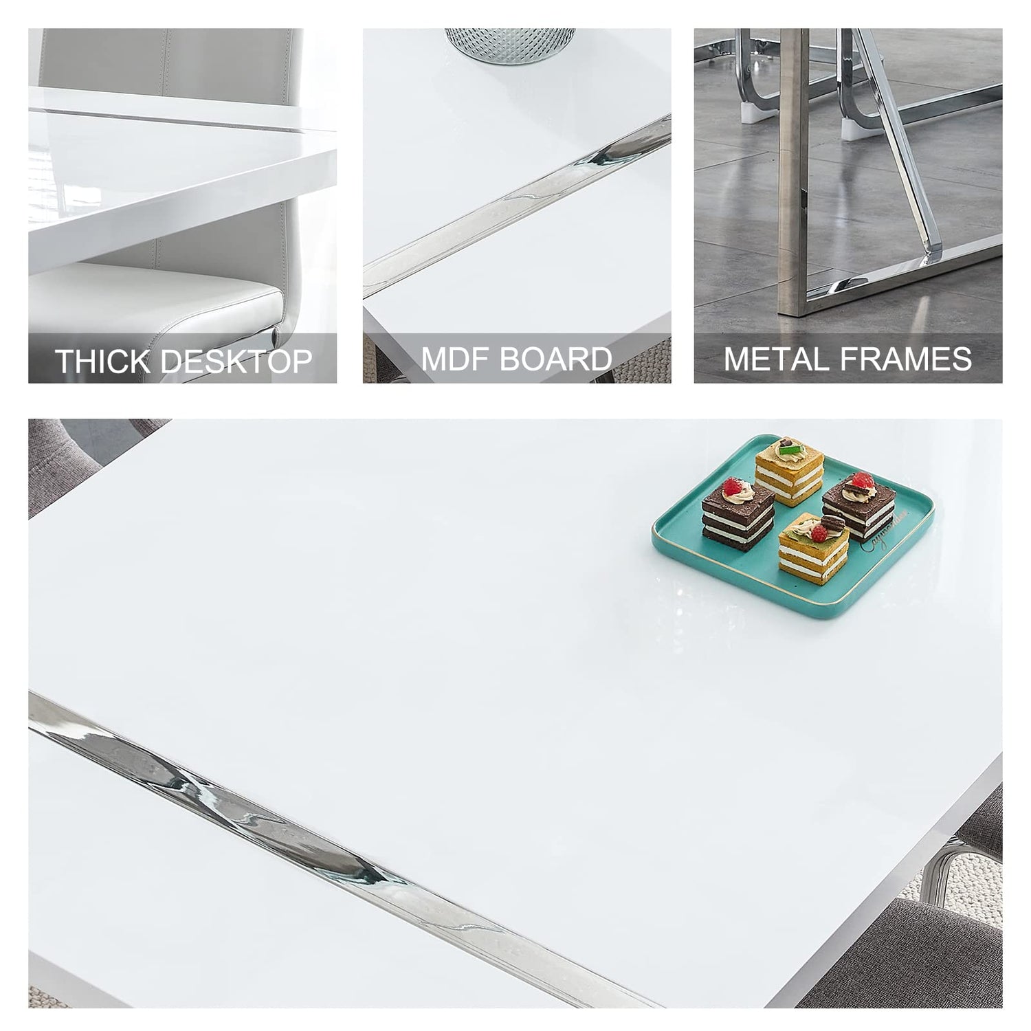 - Modern and stylish match:55 inch white dining table and faux leather dining chairs are a combination of simplicity and style with fresh colors, a perfect match for your dining room and kitchen. This dining table and chairs set for 6 people will enhance the dining comfort for you and your family