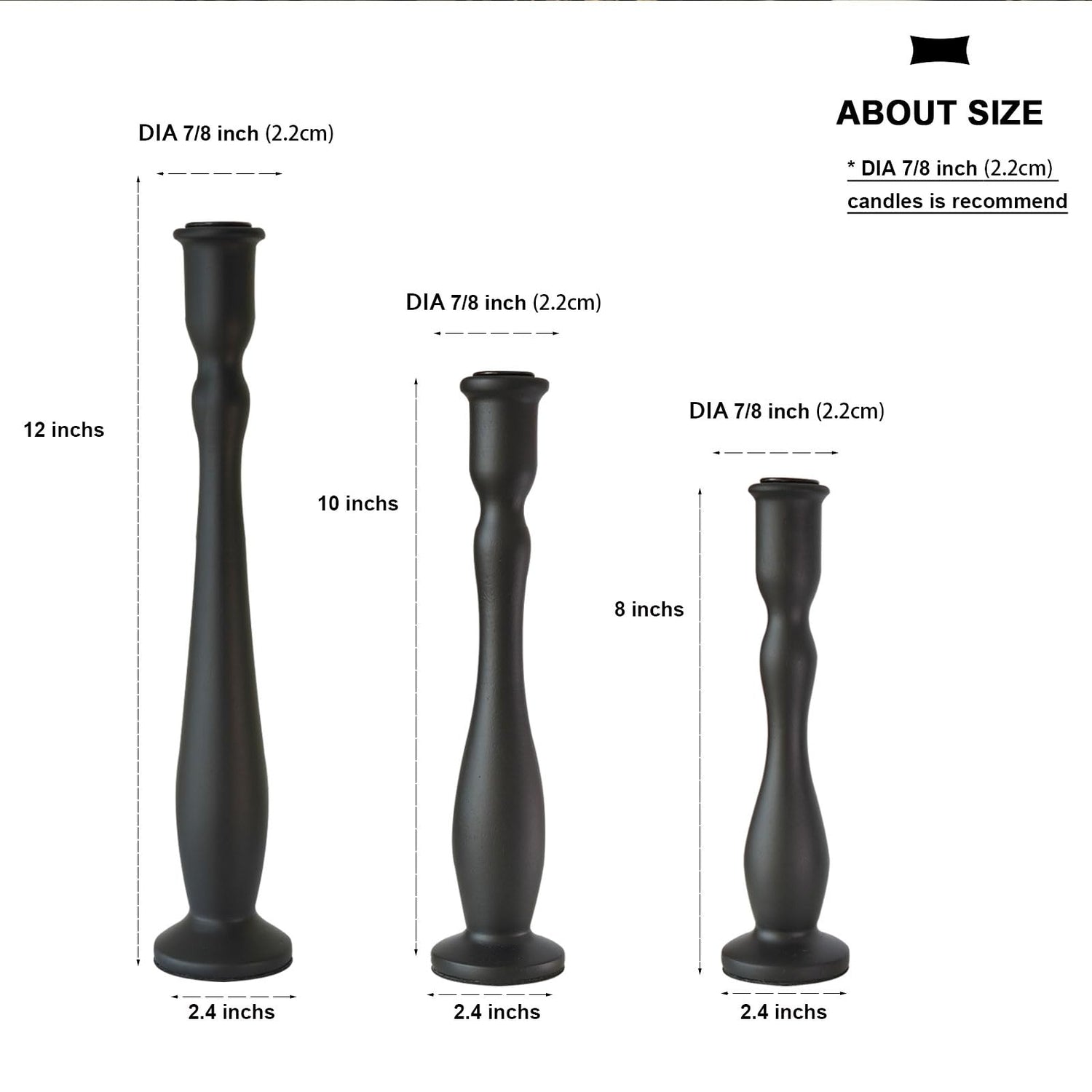 - 【Black Candlestick Holders Set of 3】Tall wooden candle holder:20.5cm/25.5cm/30.5cm(8inch/10inch/12inch)H.Diameter 2.2cm(7/8") candle is recommend