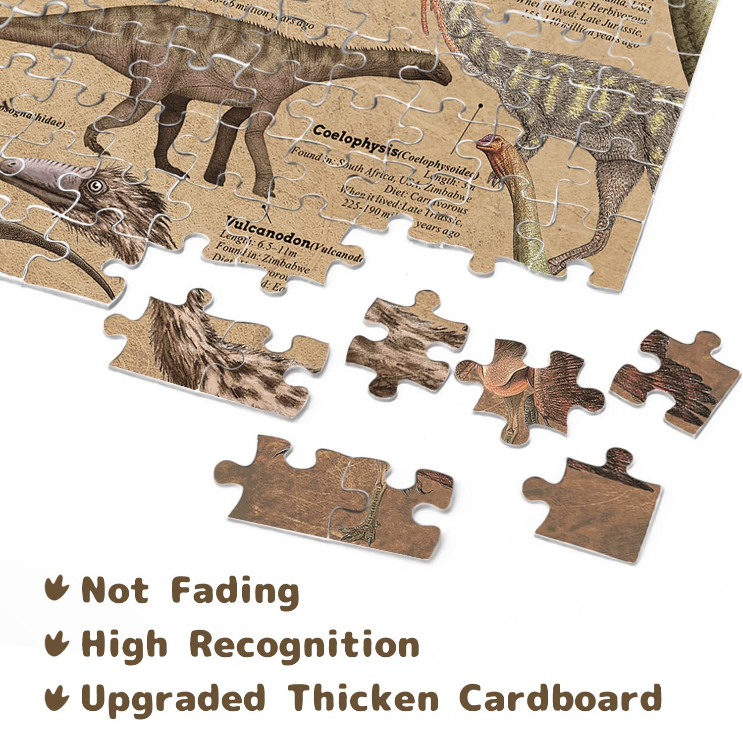 - Dinosaur Decoration: The finished puzzle, with distinctively vintage color and unique collage design, would bring a visual impact to puzzler. Frame it as a decor for livingroom, study or bedroom
