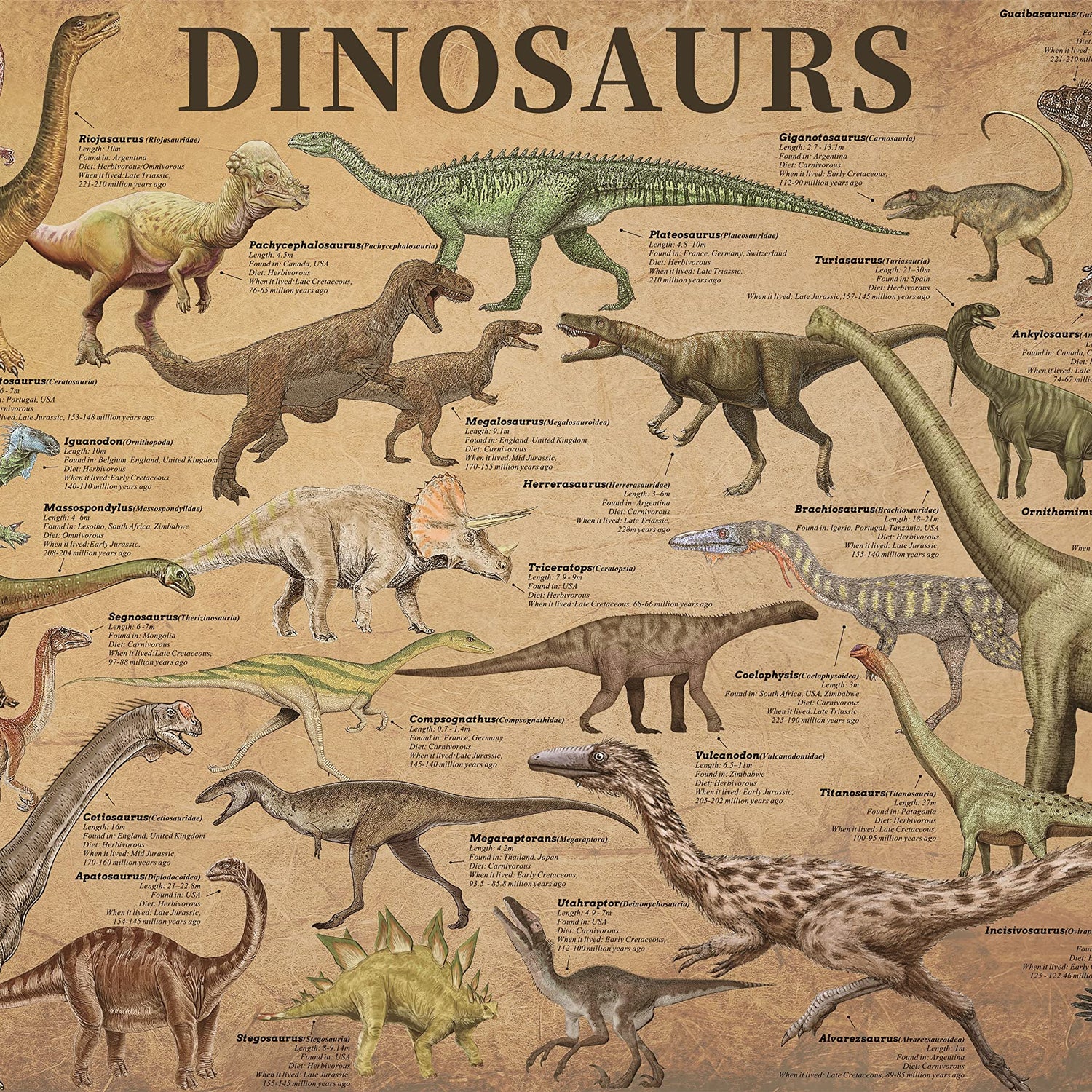 - Major Dinosaur Groups: The dinosaur puzzles show you 30 major dinosaur groups and famous breed of them. The length, fossil discovery place, diet and live period of the dinosaur are stated in the vintage puzzles for adults 1000 piece