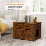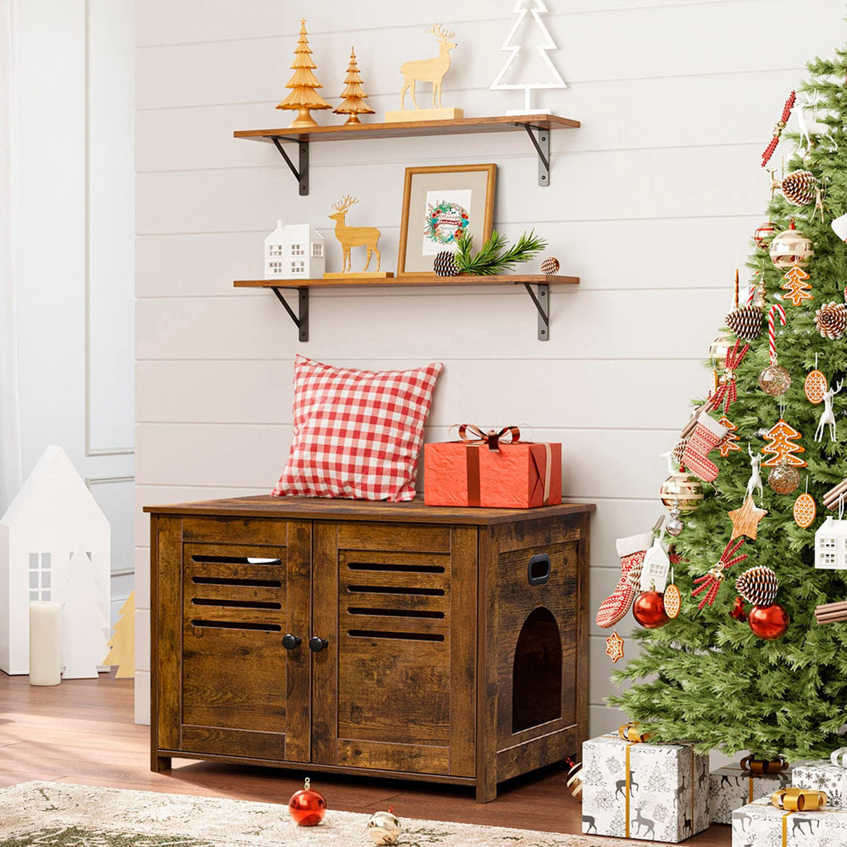 DINZI LVJ Litter Box Enclosure, Cat Litter House with Louvered Doors, Entrance Can Be on Left or Right Side, Spacious Hidden Washroom for Most of Litter Box, Cat Furniture Cabinet, Rustic Brown