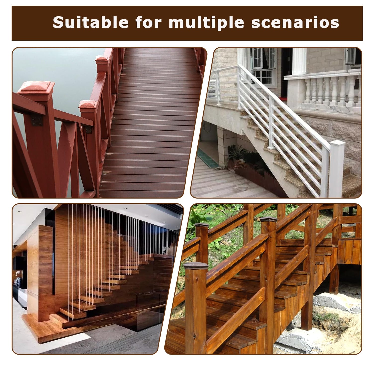 - 【4 Drill Bits & 4 Sizes Guide Holes】Equipped with four titanium-plated drill bits, corresponding to four sizes of pilot holes, High-quality industrial-grade steel, durable enough to be drilled quickly. There are four sizes of guide holes for each drilling angle, which are 3/8”(9.52mm), 5/16”(7.93mm), 1/4”(6.35) mm), 3/ 16"(4.76mm), each compatible with most cable railing cable protector sleeves and lag screws. An efficient and compact angled drill guide