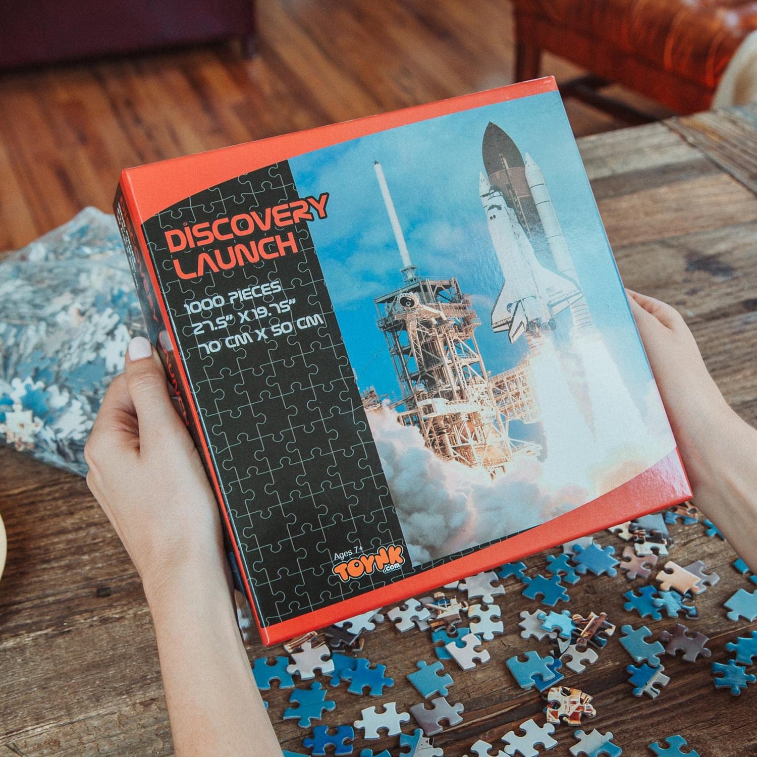- Cool Design: Spotlighting NASA's launch of the Discovery Space Shuttle, the assembled puzzle depicts the orbiter's iconic takeoff into space for its first mission. Combine your love of outer space and board games with the ultimate puzzling challenge.