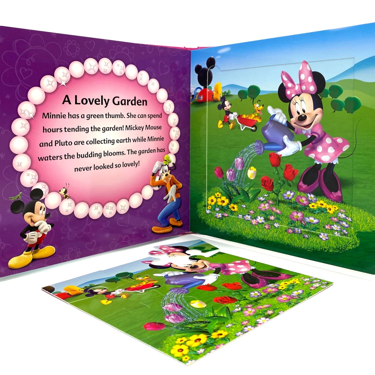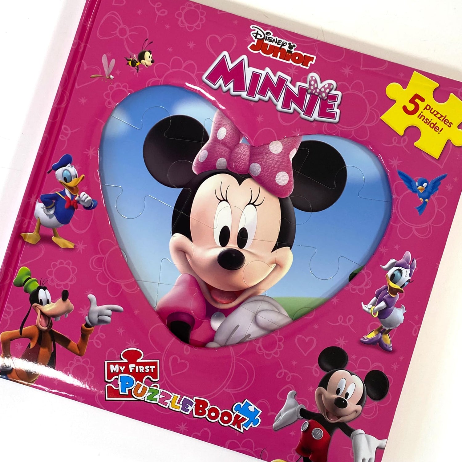Details: Engage young minds with Disney’s Minnie Mouse My First Puzzle Book, an interactive delight for curious learners! This Children's puzzle book is a unique set that combines the joy of reading with hands-on puzzle play. This set includes a padded board book and five engaging puzzles, each consisting of nine sturdy pieces designed for little hands.