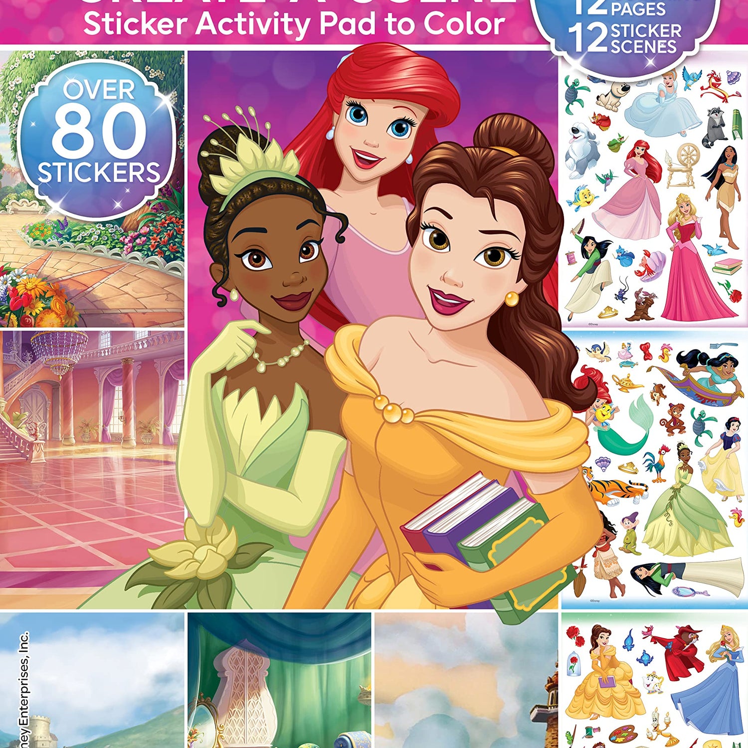 - Create a Scene Sticker Activity Includes: 12 Disney Princess Sticker Play Scenes; 4 Sticker Sheets; 12 Coloring Pages.
