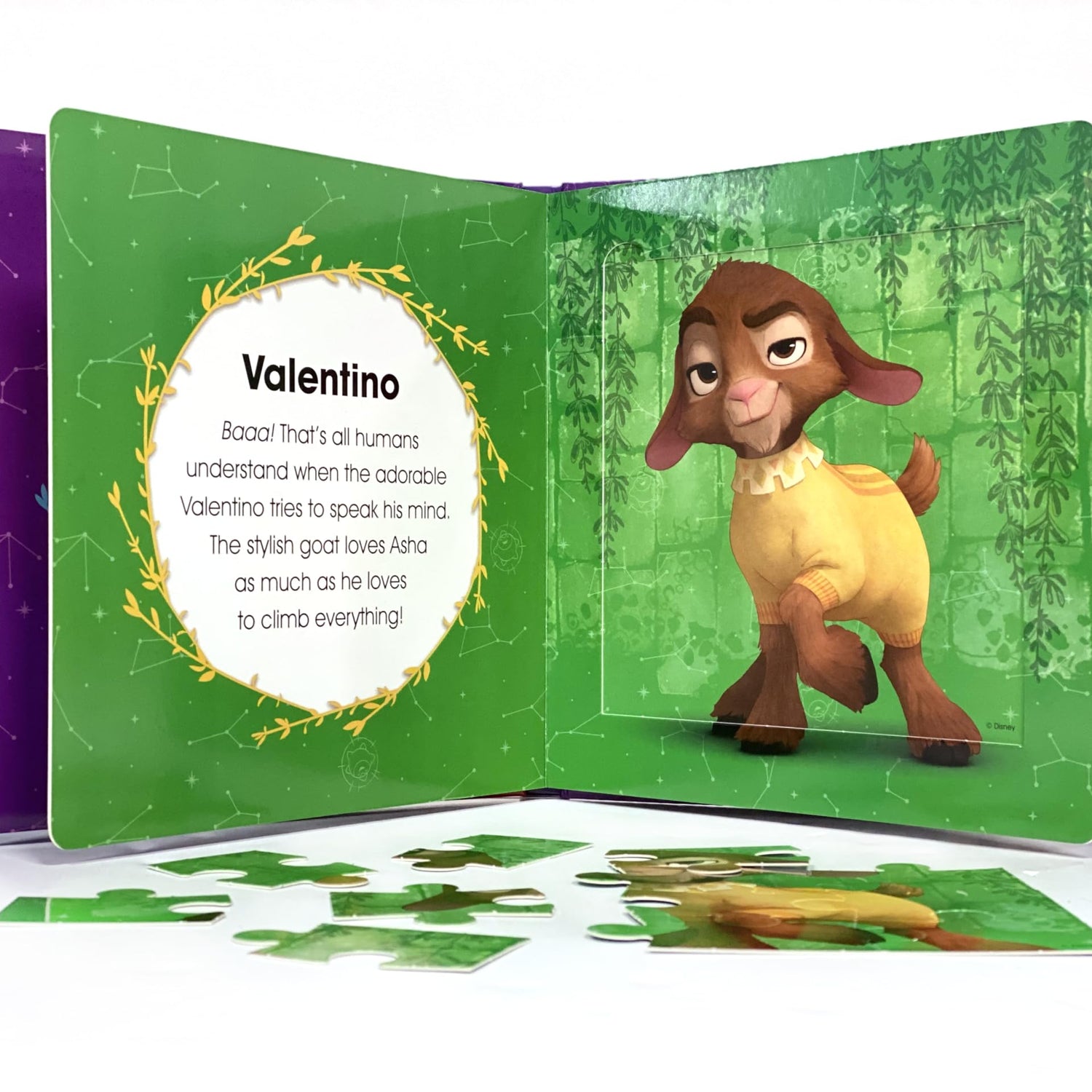 Details: Engage young minds with Disney’s Wish My First Puzzle Book, an interactive delight for curious learners! An interactive delight for curious learners! This Children's puzzle book is a unique set that combines the joy of reading with hands-on puzzle play. This set includes a padded board book and five engaging puzzles, each consisting of nine sturdy pieces designed for little hands.
