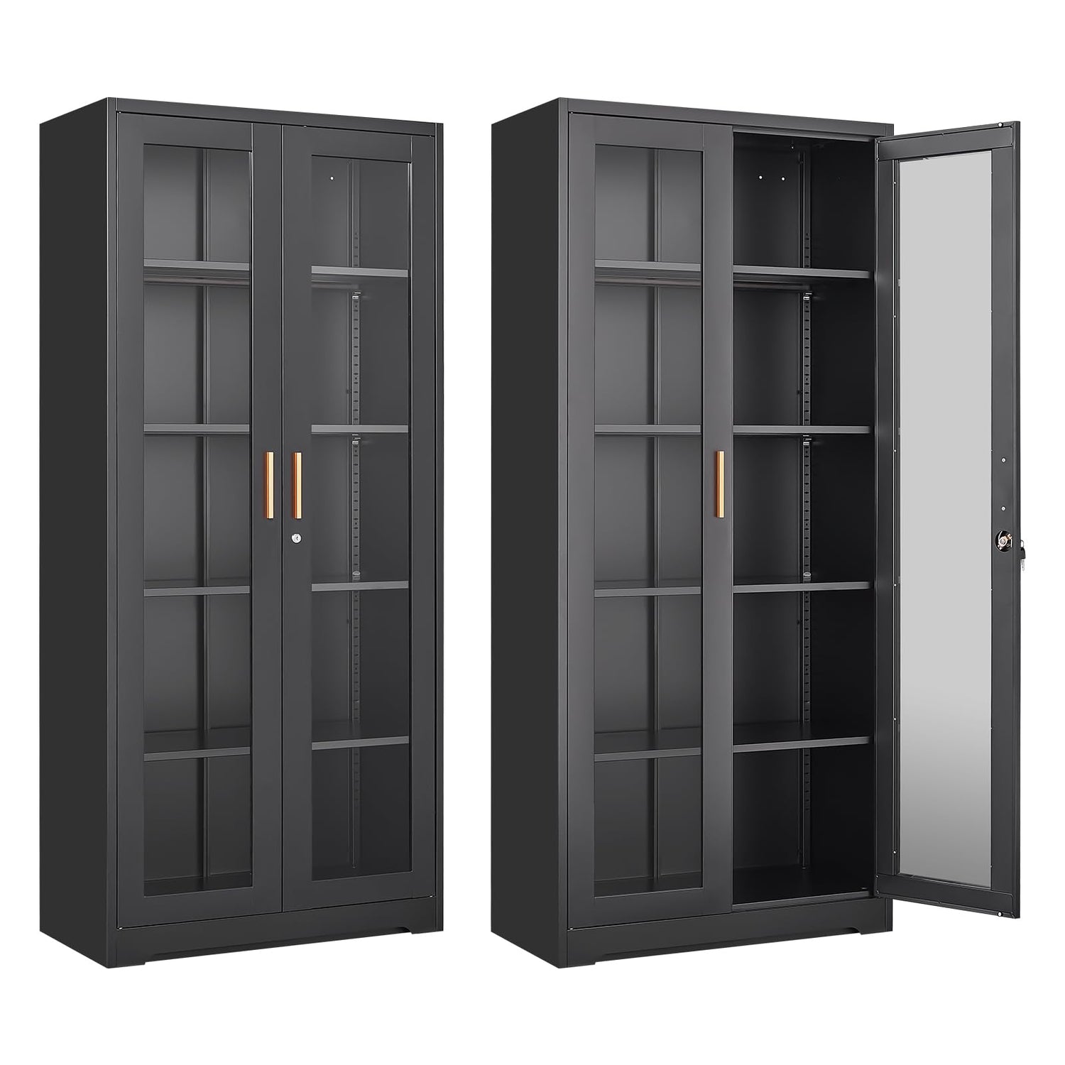 - 【Sturdy and Large Storage】The size 32 "W X 16 "D X 71 "H,the large size provides more storage space.The curio cabinets with glass doors are made of high-quality steel, and the glass doors are made of HD glass certified by 3C.Each shelf can withstand a weight of 180lbs