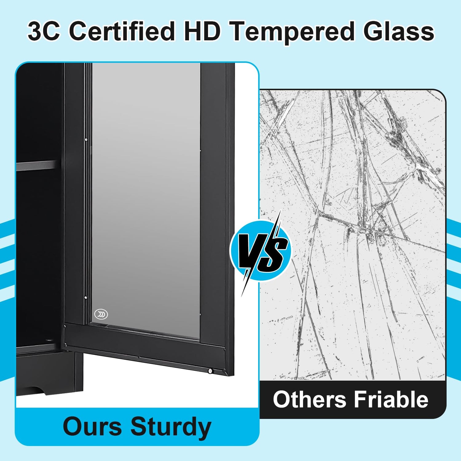 - 【Fashion and Safe Design】The glass cabinet display case comes with 2 gold metal door handles, making it easy to open and close display case,curio cabinets adopts a three-point door lock,the lock is equipped with 3 keys.Increased safety and privacy of goods