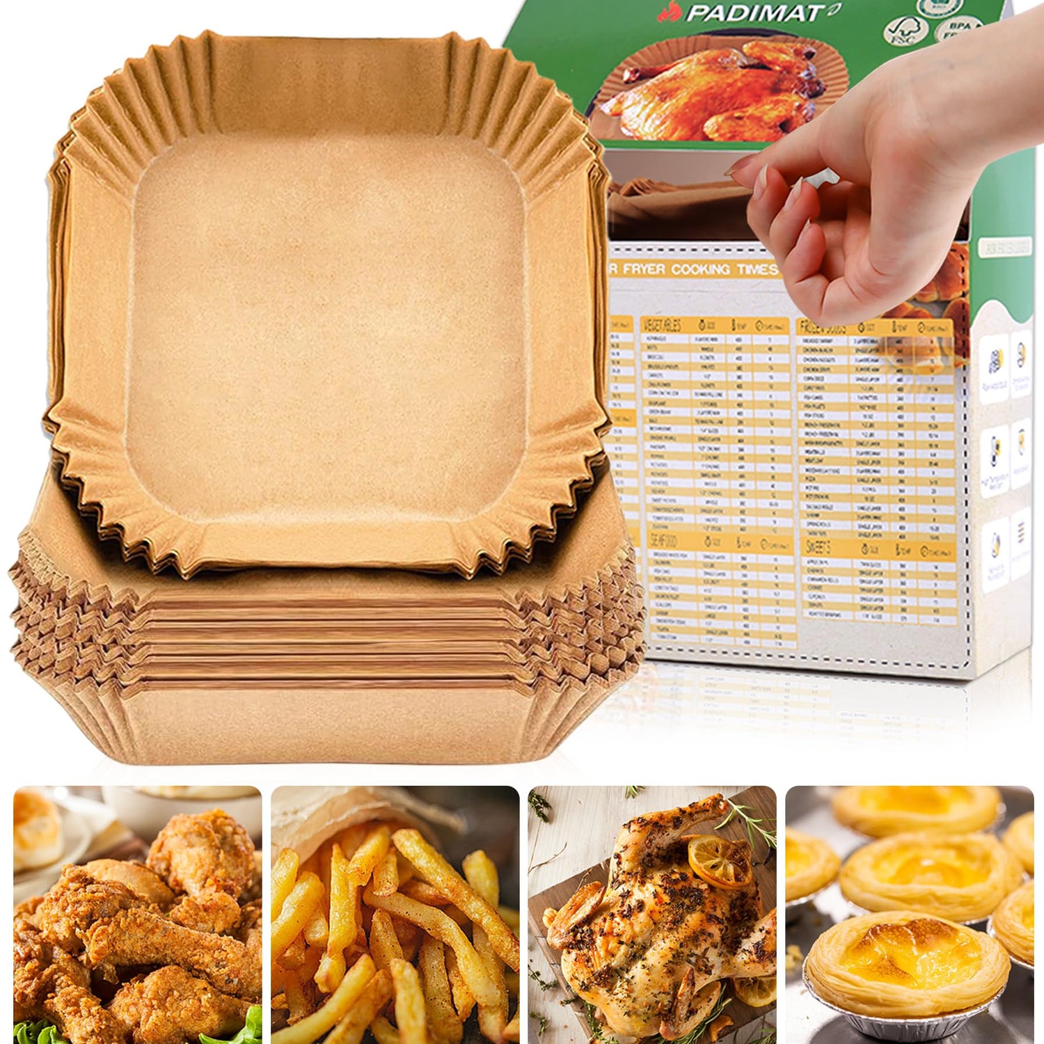 - ♻️【Environmentally Friendly Packaging】PADIMAT designs unique boxes that are more environmentally friendly than plastic packaging. Innovative carton socket design is more convenient to take the air fryer liner, the box printed cooking times, so that you can more easily check the cooking time of food, box durable, dust and soot proof, reusable.
