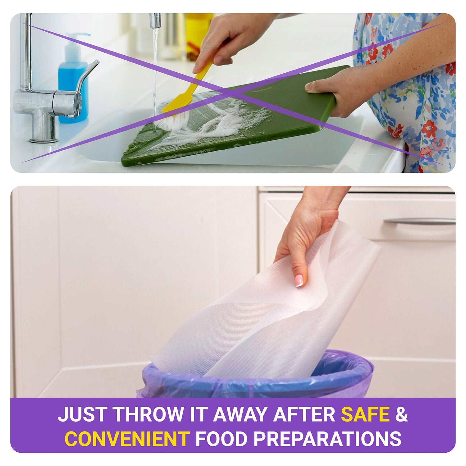 • LONG LASTING - the roll is an ideal alternative to traditional chopping boards & contain 25 disposable cutting sheets 12*15 inches each.