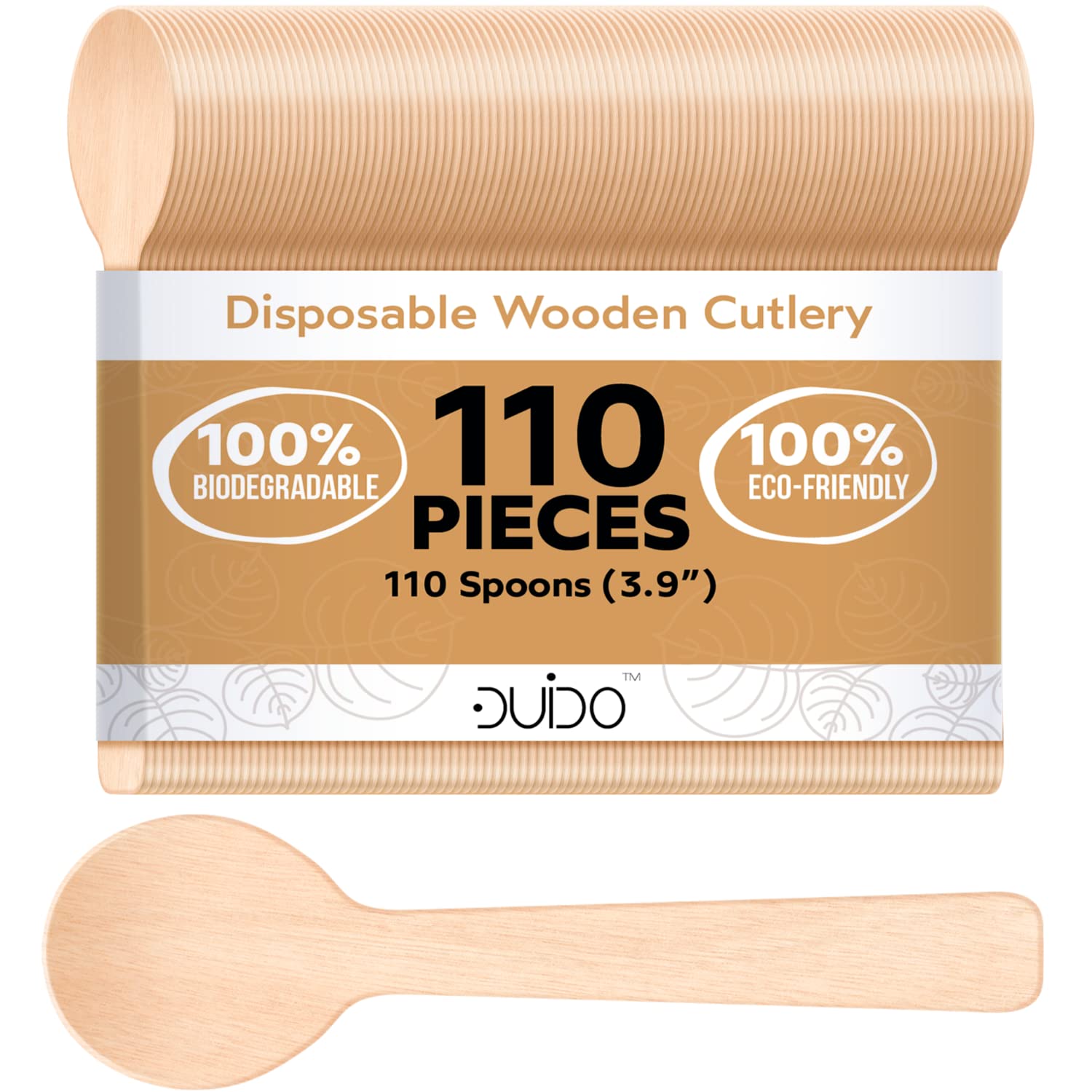 - PERFECTLY SIZED WOODEN SPOONS BULK SET – Duido’s wooden disposable spoons includes 110 wood spoons for eating desserts, mini spoons disposable for stirring coffee or tea and much more; Each mini wooden spoons utensil wood piece is perfectly sized at 3.9 inches long with the most comfortable grip; Our small wooden spoon utensil set offers the best alternative to toxic plastic silverware; Give the final touch to your desserts using our adorable wooden disposable spoons