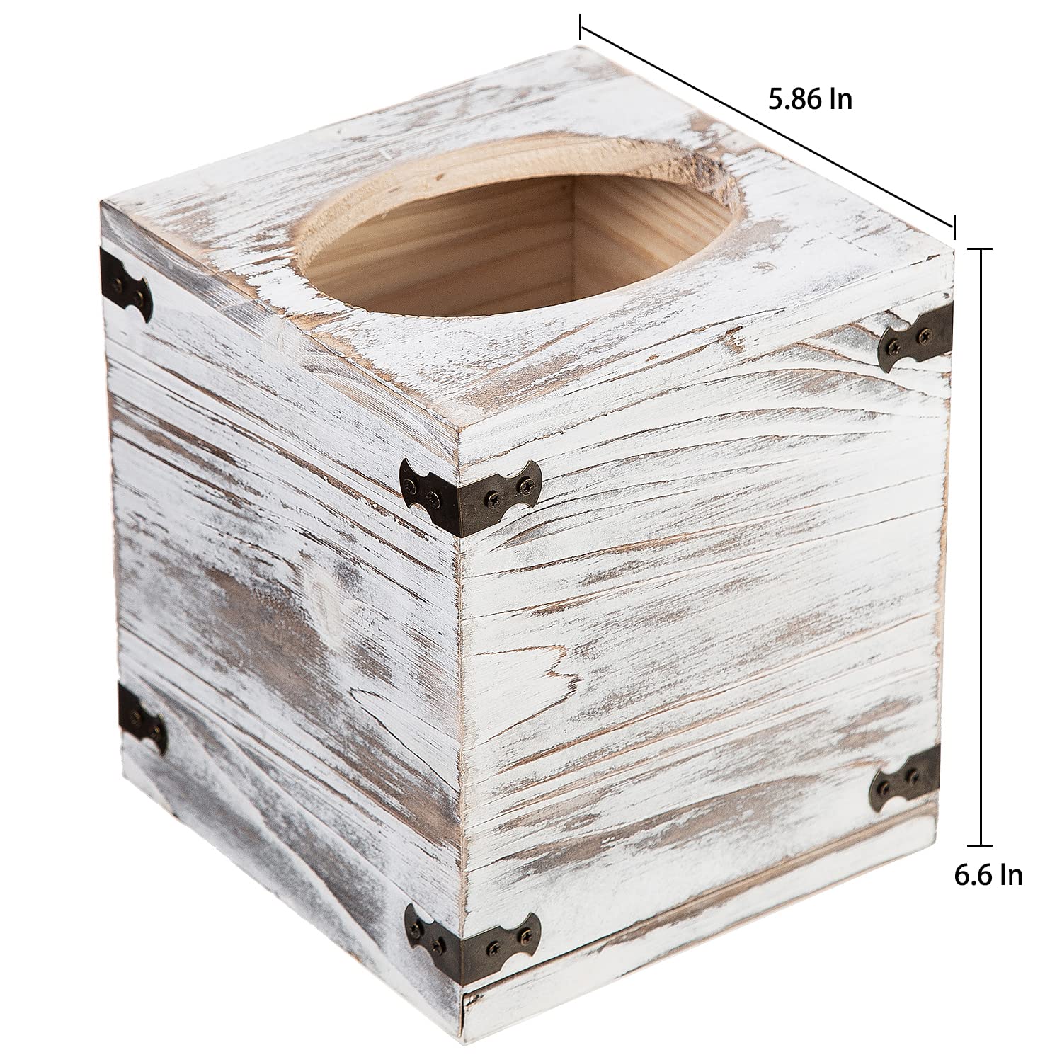 Distressed Farmhouse Square Solid Wood Tissue Box Cover with Slide-Out Bottom Panel Honey Brown Tissue Box Holder for Bathroom Living Room Dining Room Bedroom Toilet (Washed White)
