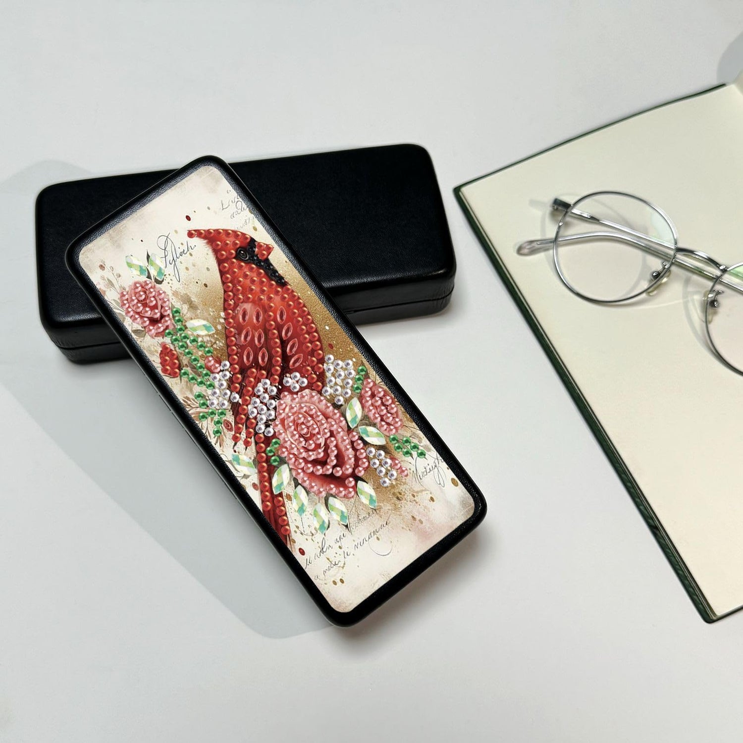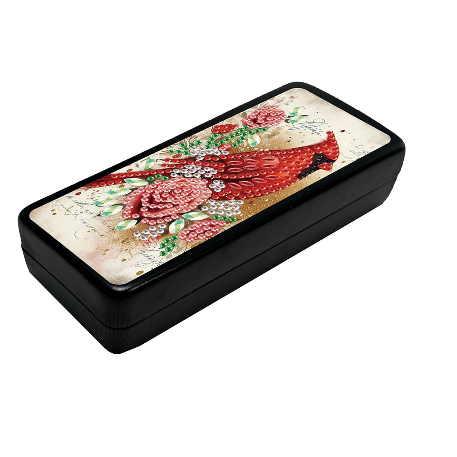DIY Diamond Art Painting Portable Eyeglasses Case, Anti-Stress Retro Sunglasses Glasses Storage Box Eyeglass Safety Pouch Box-Cardinal-1