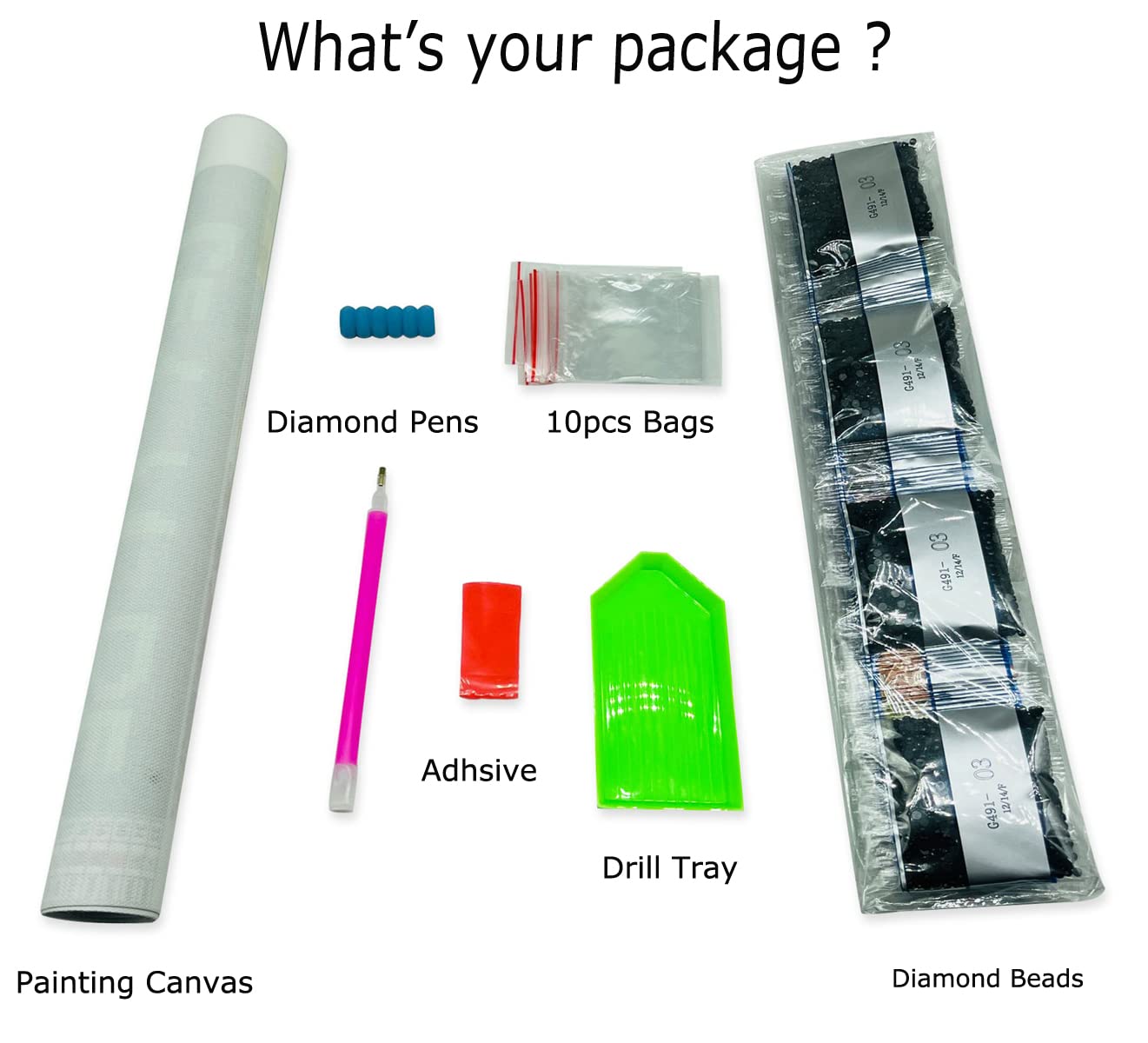 - Contain All Diamond art Tools:Our paint kits contain all tools, include 1pcs Point diamond pen, 1pcs 12X12in canvas, 1pcs x glue, 1pcs trays, 10pcs ziplock bags and enough colorful round diamonds (offer extra 30% diamond dots beads), so you don’t need to purchase any additional tools.