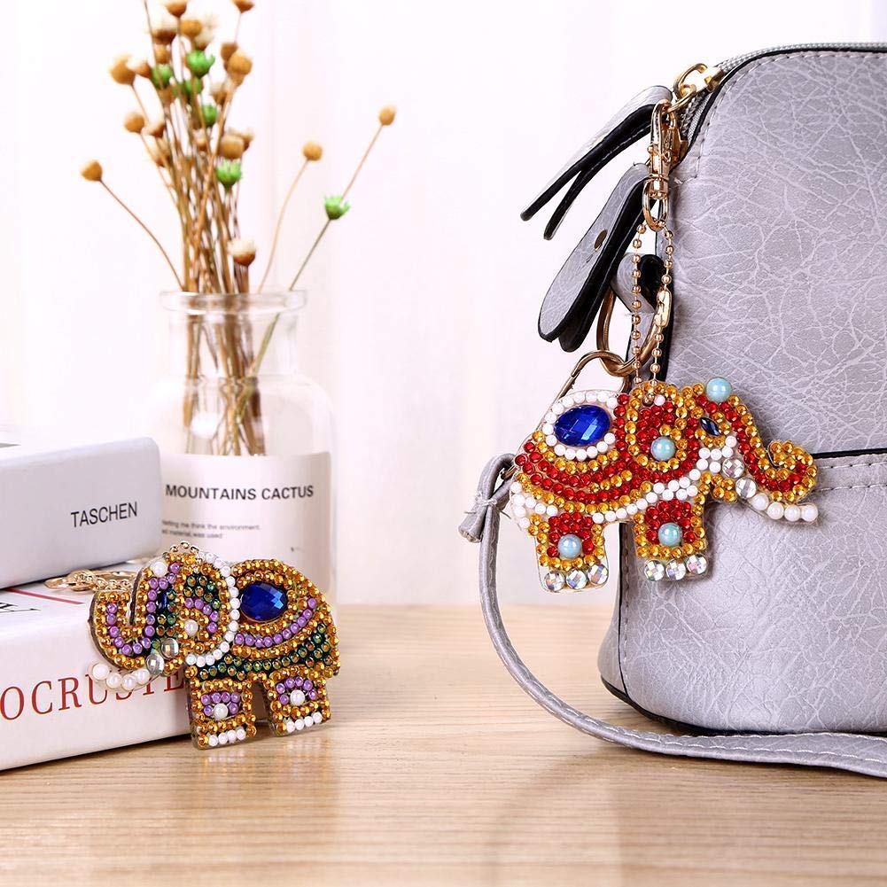 DIY Key Chains Diamond Painting by Numbers Kits, Full Drill Rhinestone Mosaic Making Christmas Decorative for Art Craft Key Ring Phone Charm Bag Decor (5 Pack) (Artistic Elephant)