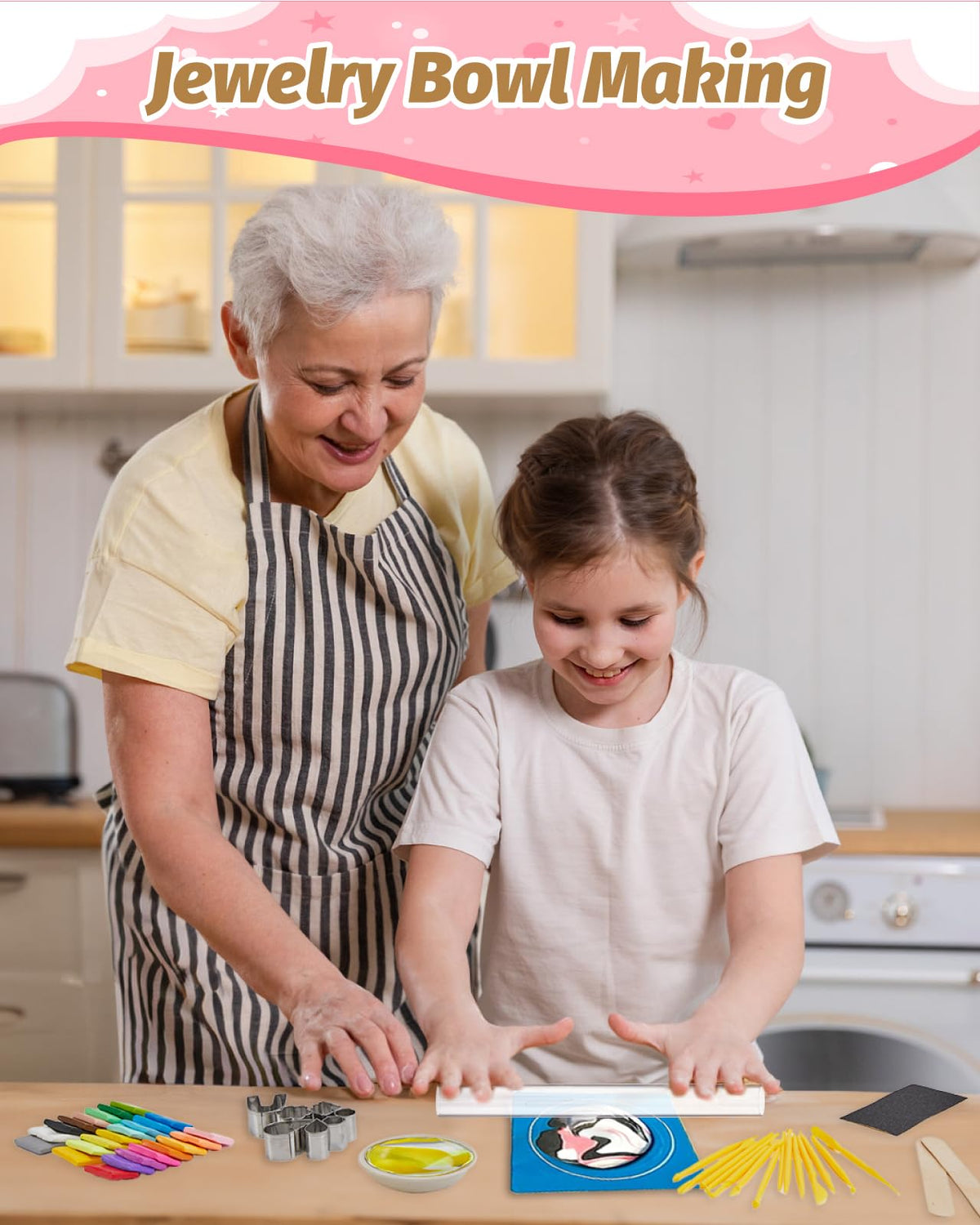 - DIY Jewelry Bowl Making Kit: This 232-piece clay craft set includes everything a child needs to create unique jewelry bowls. Featuring 24 bright colors of clay, stainless steel cutters, a roller, carving tools, hole punches, glue, pliers, jewelry findings, and a step-by-step guide, perfect for inspiring creativity in children aged 8 to 12