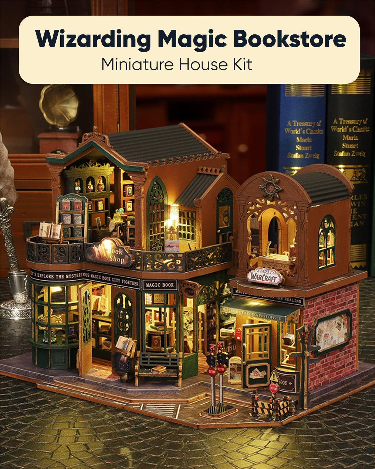 DIY Miniature House Kit, Mayberry Street Miniatures, Magic House Miniature kit, Model Building Craft Diorama Kit, Ideal Gifts for Birthday Easter Christmas(Magic Book Shop)