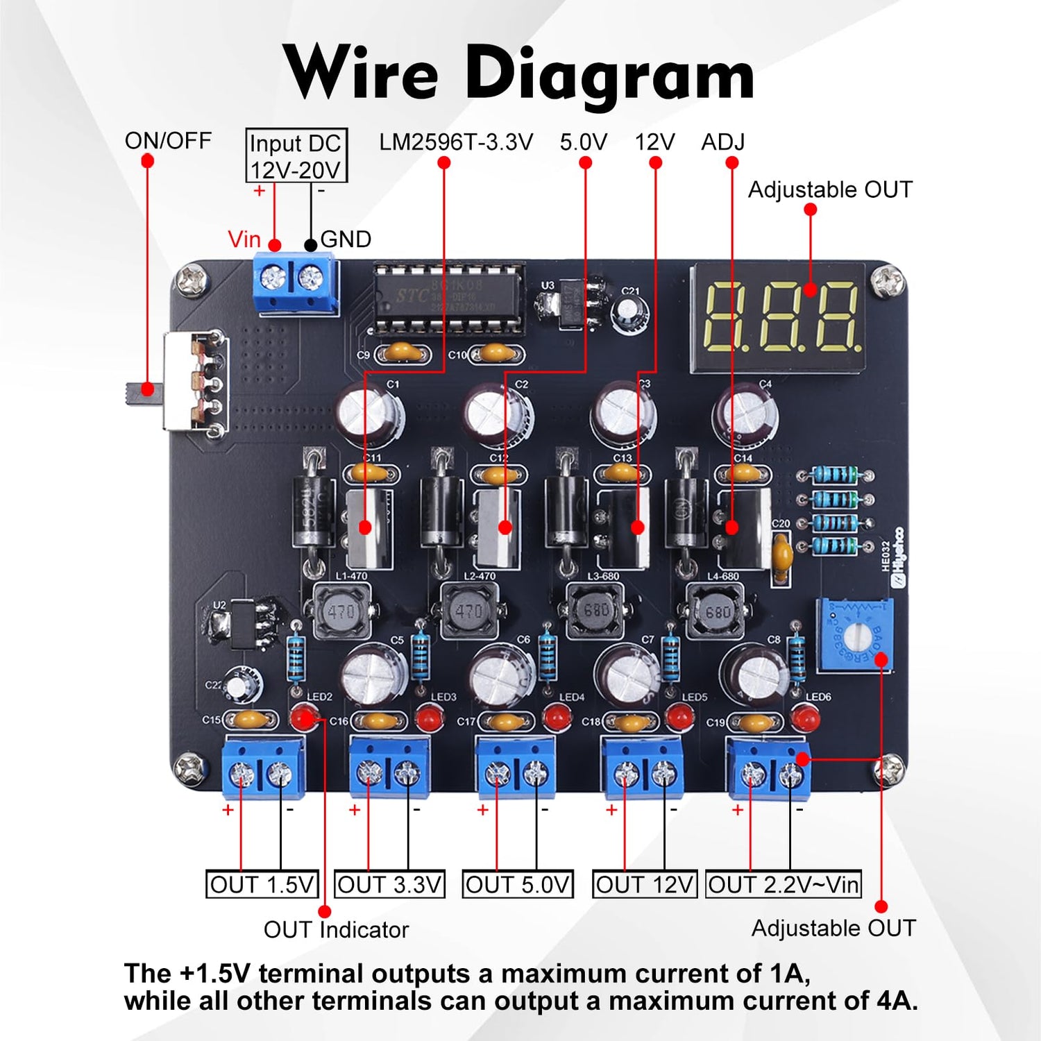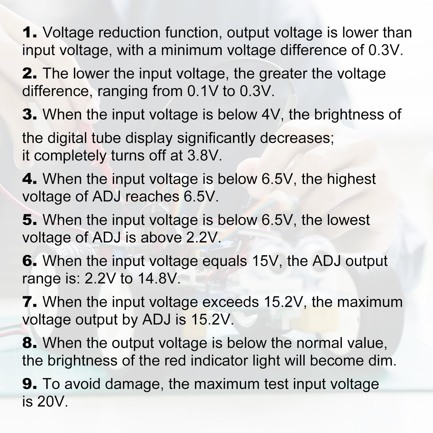 - 【ADJ Output Display】LM2596 power supply module features a digital display that clearly shows the voltage values when adjusting the output voltage. The maximum voltage display error is no more than 0.45V.